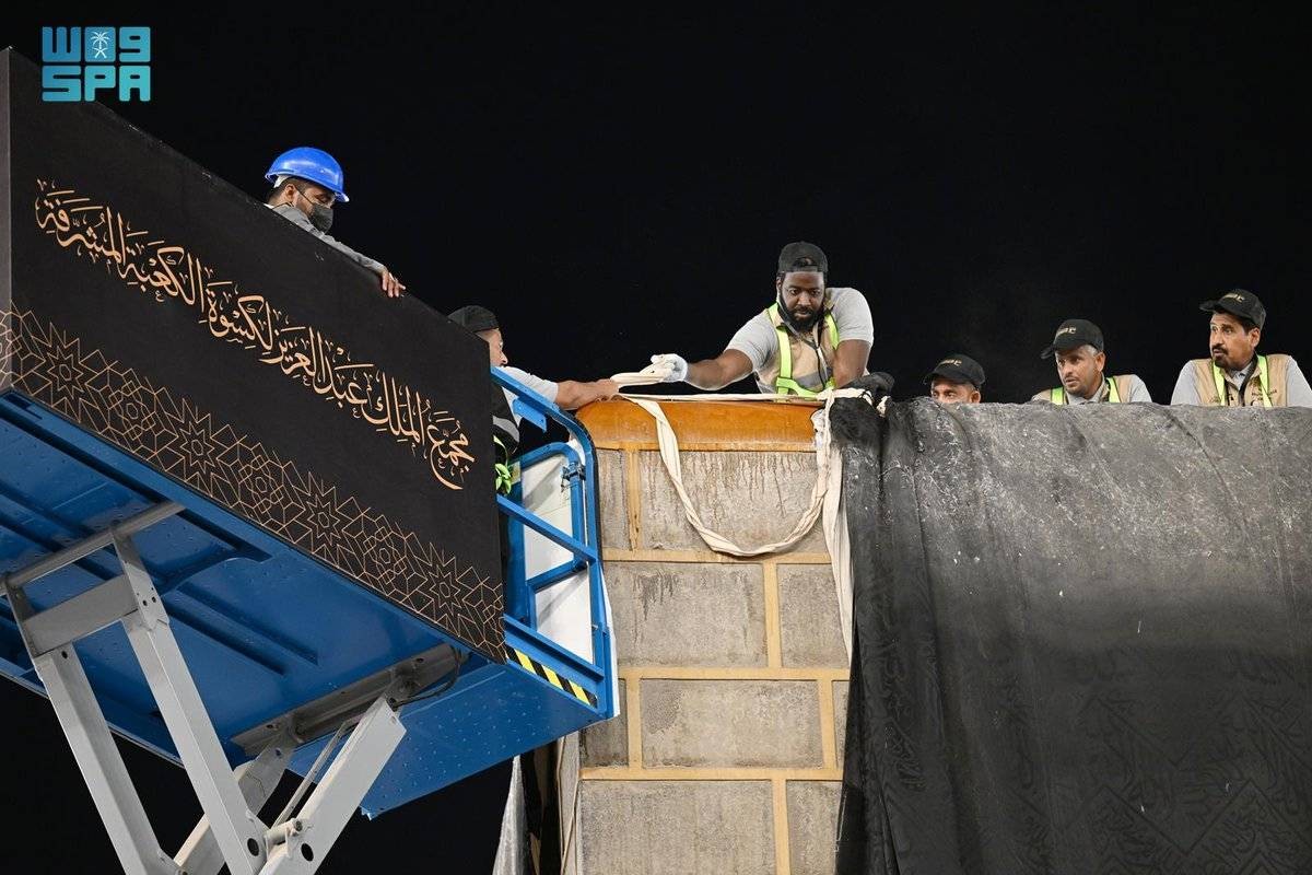 استبدلت الرئاسة العامة لشؤون المسجد الحرام والمسجد النبوي، اليوم، كسوة الكعبة المشرفة كما جرت العادة السنوية، حيث تم تفكيك الكسوة القديمة وتركيب الجديدة، ثم تثبيتها في أركان الكعبة وسطحها.