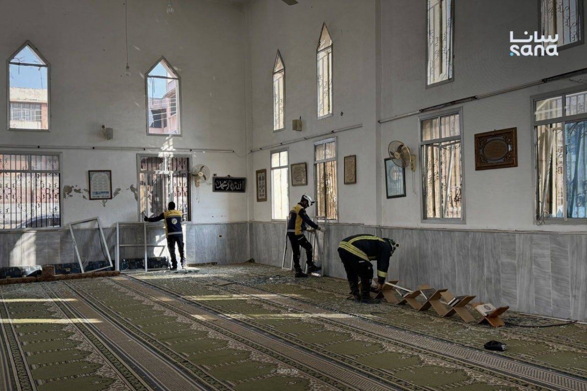 قتل 5 أشخاص وأصيب 21 في حصيلة أولية جراء انفجار في مسجد الإمام علي بن أبي طالب في حي وادي الذهب بحمص.