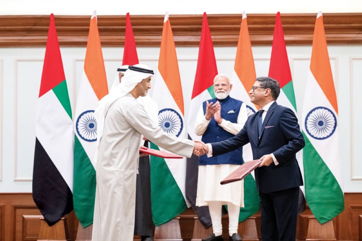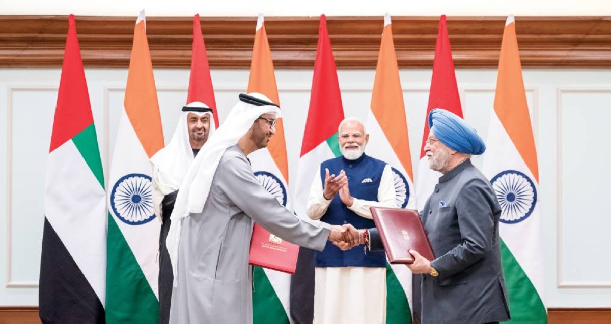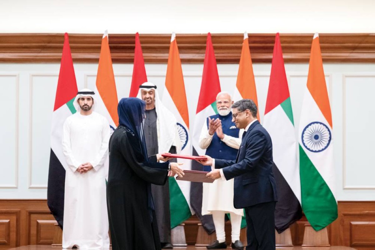 شهد صاحب السمو الشيخ محمد بن زايد آل نهيان، رئيس الدولة، حفظه الله، ودولة ناريندرا مودي، رئيس وزراء جمهورية الهند، تبادل عدد من الاتفاقيات ومذكرات التفاهم وخطابات النوايا تهدف إلى تعزيز التعاون بين البلدين وتطويره، وذلك في إطار زيارة عمل التي قام بها سموه إلى جمهورية الهند.