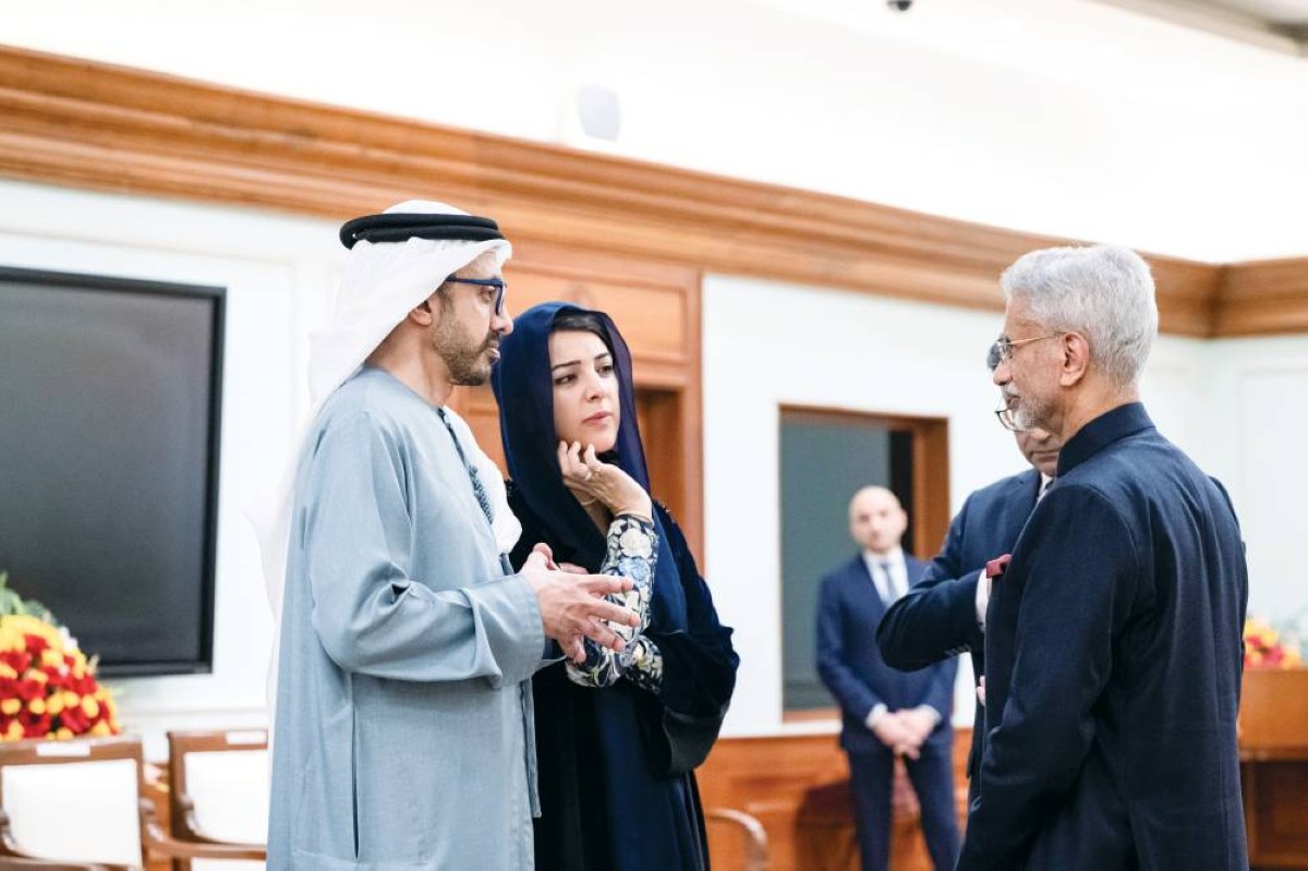 محمد بن زايد وناريندرا مودي وحمدان بن محمد يشهدون تبادل عبدالله بن زايد وسوبرامانيام جايشانكار خطاب نوايا بشأن الشراكة في المجال الدفاعي