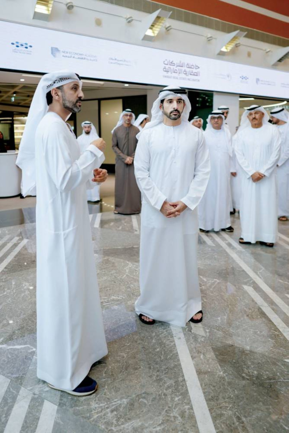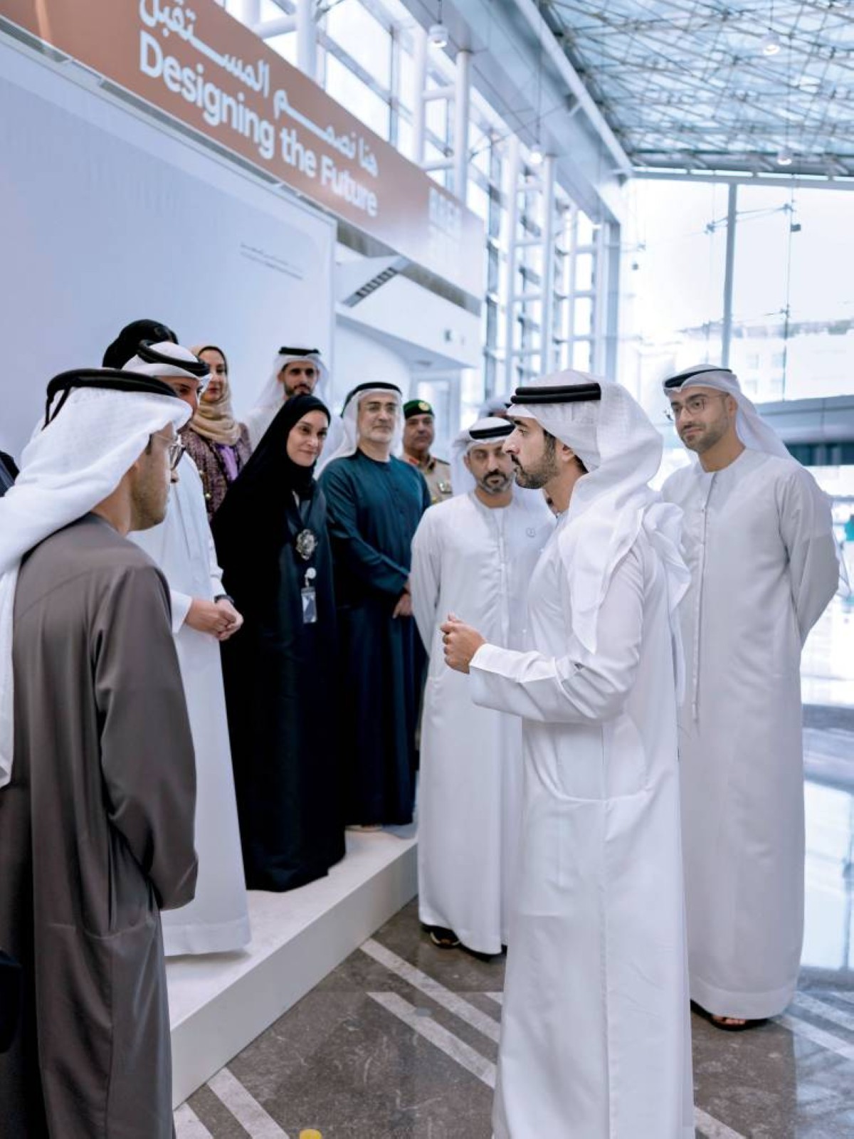 وزير شؤون مجلس الوزراء، ومعالي عمر بن سلطان العلماء، وزير دولة للذكاء الاصطناعي والاقتصاد الرقمي وتطبيقات العمل عن بُعد، نائب العضو المنتدب لمؤسسة دبي للمستقبل، وخلفان بالهول، الرئيس التنفيذي لمؤسسة دبي للمستقبل.