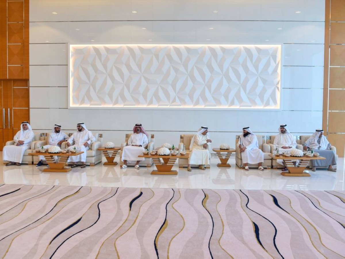 حضر حفل الاستقبال معالي الشيخ حميد بن أحمد المعلا، والشيخ خالد بن راشد المعلا، رئيس الديوان الأميري، والشيخ مكتوم بن راشد المعلا، والشيخ سيف بن راشد المعلا، رئيس دائرة التنمية الاقتصادية، والشيخ عبد العزيز بن حميد النعيمي، رئيس دائرة الأراضي والتنظيم العقاري بعجمان، والشيخ راشد بن حميد النعيمي، رئيس دائرة البلدية والتخطيط بعجمان، وعدد من الشيوخ.