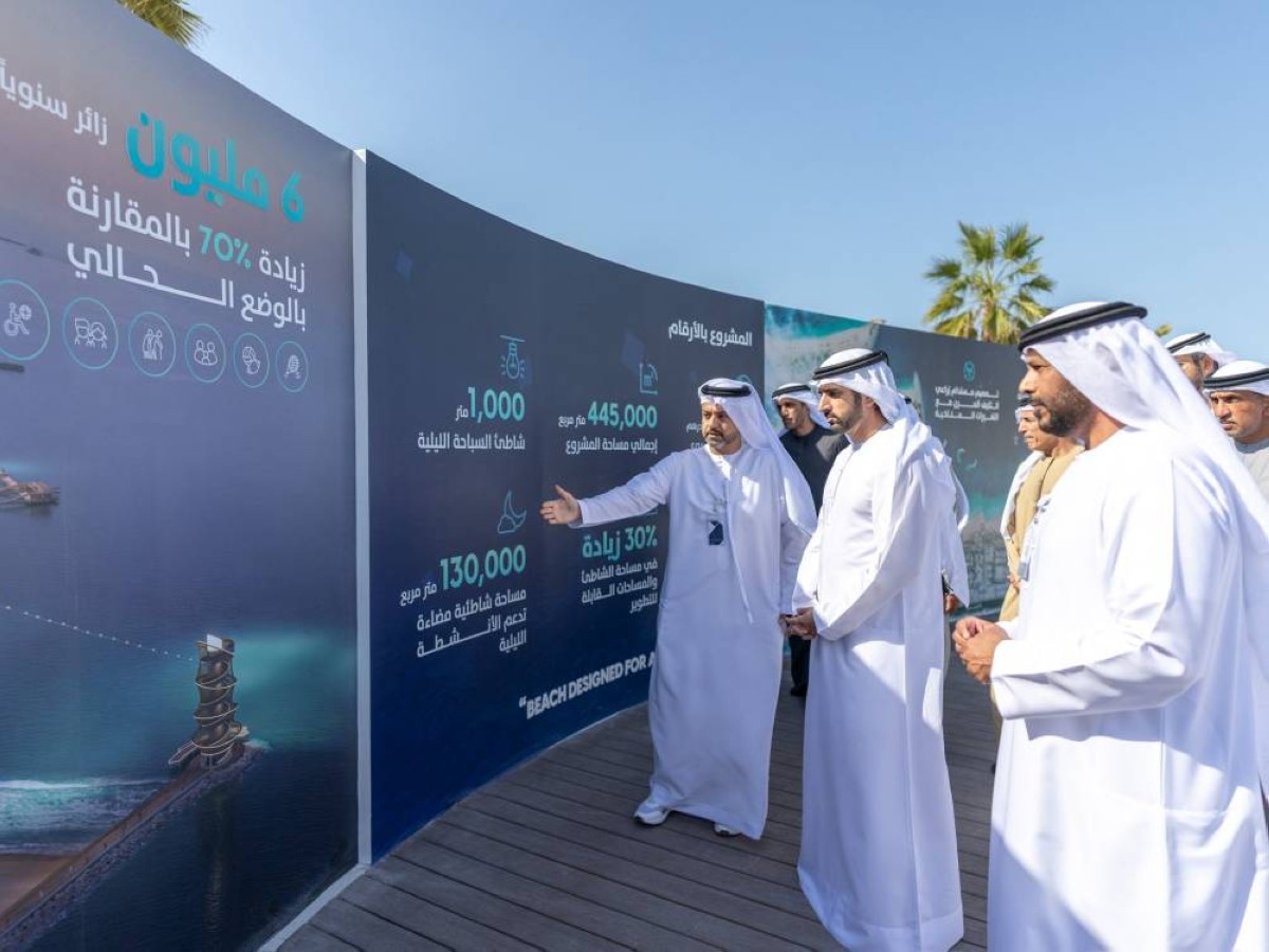 واطّلع سموّه على المخطط العام للمشروع الذي يجري تطويره على امتداد الشاطئ ليشكل وجهة شاطئية متكاملة بمعايير عالمية وببصمة إماراتية، تعكس رؤية دبي المستقبلية في تطوير المساحات العامة والواجهات البحرية، وتسهم في ترسيخ مكانة دبي كأفضل مدينة للعيش والعمل والزيارة في العالم وواحدة من أفضل الوجهات السياحية العالمية.