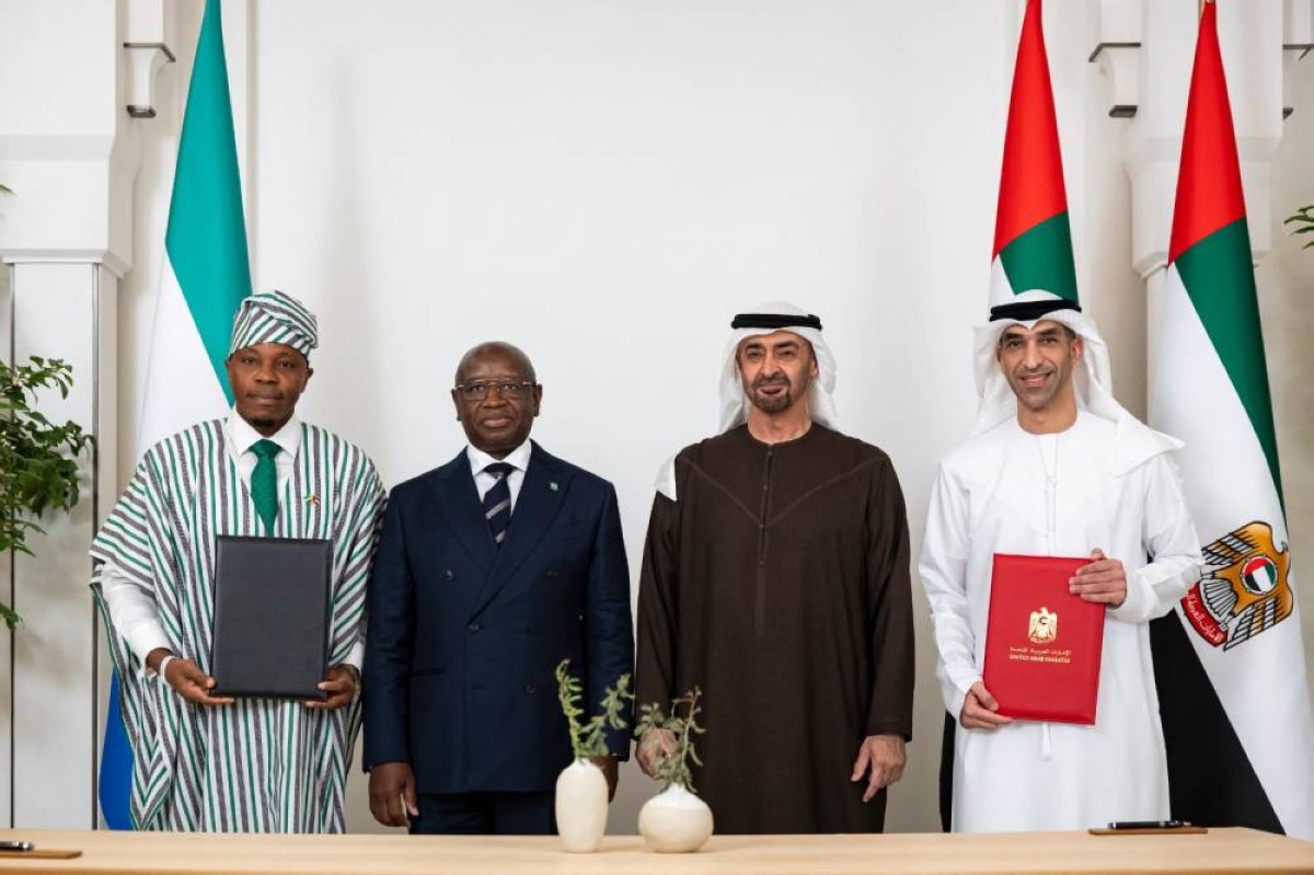 بحث صاحب السمو الشيخ محمد بن زايد آل نهيان رئيس الدولة "حفظه الله" وفخامة جوليوس مادا بيو رئيس جمهورية سيراليون اليوم، مختلف جوانب العلاقات الثنائية وفرص تطويرها خاصة في المجالات الاقتصادية والتجارية والاستثمارية والطاقة المتجددة والاستدامة وغيرها من المجالات التي تمثل أولويات تنموية للبلدين بما يخدم مصالحهما المشتركة ويعود بالخير والنماء على شعبيهما.