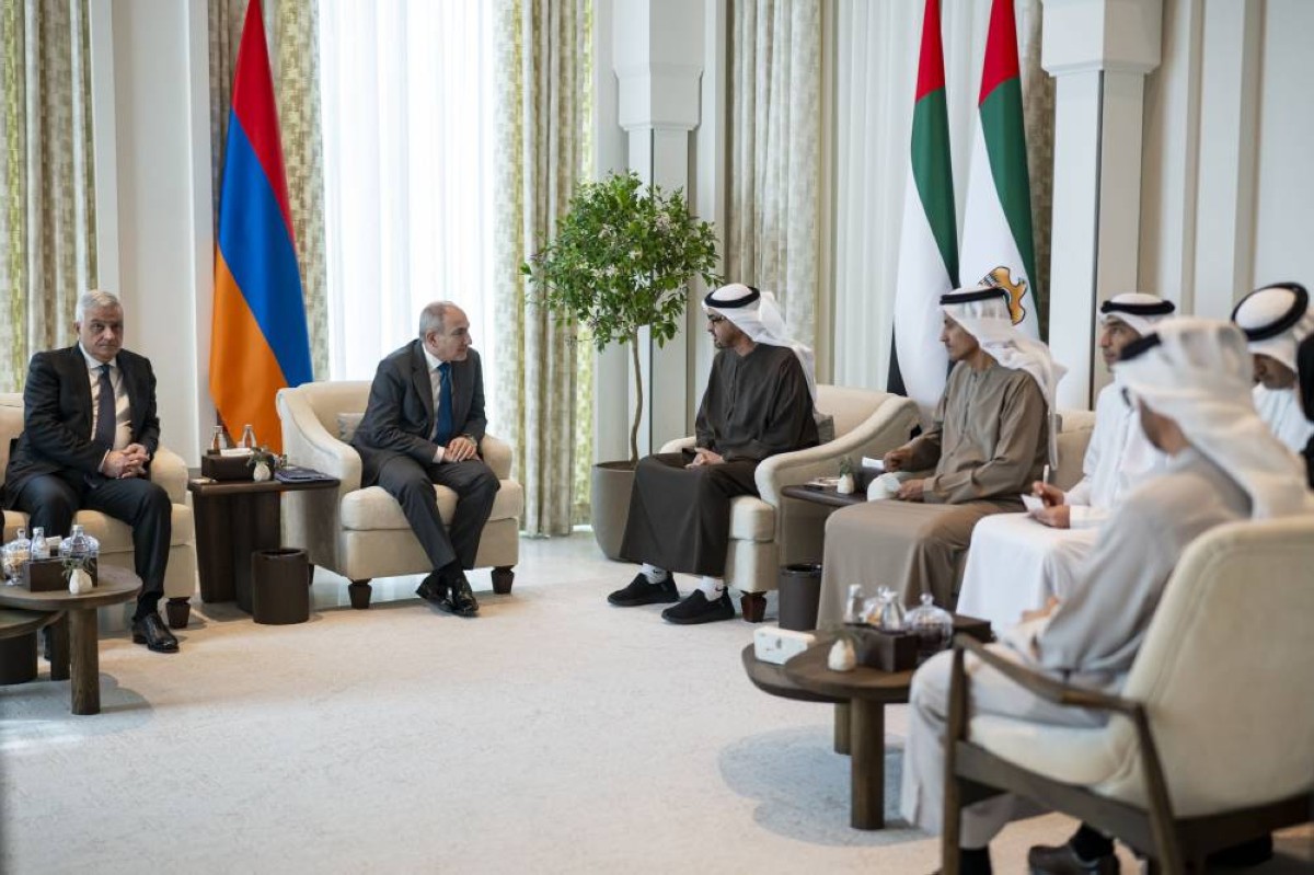 بحث صاحب السمو الشيخ محمد بن زايد آل نهيان رئيس الدولة "حفظه الله" ومعالي نيكول باشينيان رئيس وزراء جمهورية أرمينيا اليوم، علاقات التعاون في مختلف المجالات خاصة الاقتصادية والاستثمارية والتنموية وفرص تعزيزها بما يخدم مصالحهما المتبادلة، ويحقق التقدم والازدهار لشعبيهما.