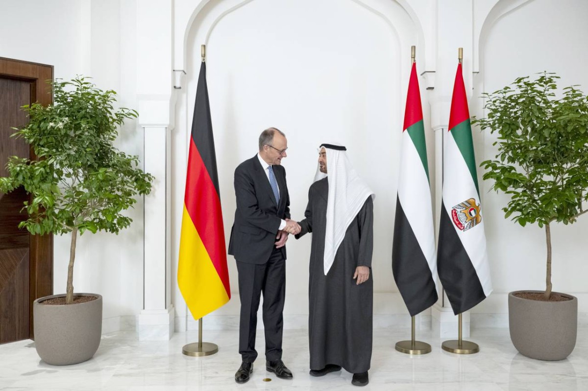 ورحب صاحب السمو رئيس الدولة، خلال اللقاء الذي جرى في قصر الشاطئ في أبوظبي، بالمستشار الألماني الذي يقوم بزيارة رسمية إلى الدولة، مؤكداً أن دولة الإمارات وألمانيا تجمعهما علاقات راسخة وشراكات فاعلة، خصوصاً في مجالات الطاقة والتنمية والابتكار والتكنولوجيا المتقدمة وغيرها، وأشار إلى أن الدولة حريصة على تنمية هذه العلاقات والارتقاء بها إلى آفاق أوسع لما فيه الخير للبلدين وشعبيهما.