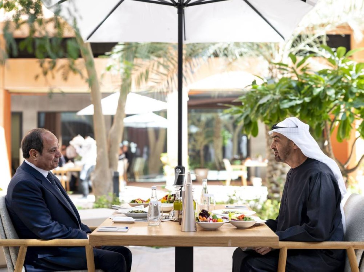 بحث صاحب السمو الشيخ محمد بن زايد آل نهيان رئيس الدولة "حفظه الله" مع أخيه فخامة عبد الفتاح السيسي رئيس جمهورية مصر العربية الشقيقة اليوم، العلاقات الأخوية ومختلف جوانب التعاون والعمل المشترك بين البلدين وفرص تعزيزهما خاصة في المجالات التنموية والاقتصادية بما يخدم مصالحهما المشتركة.
