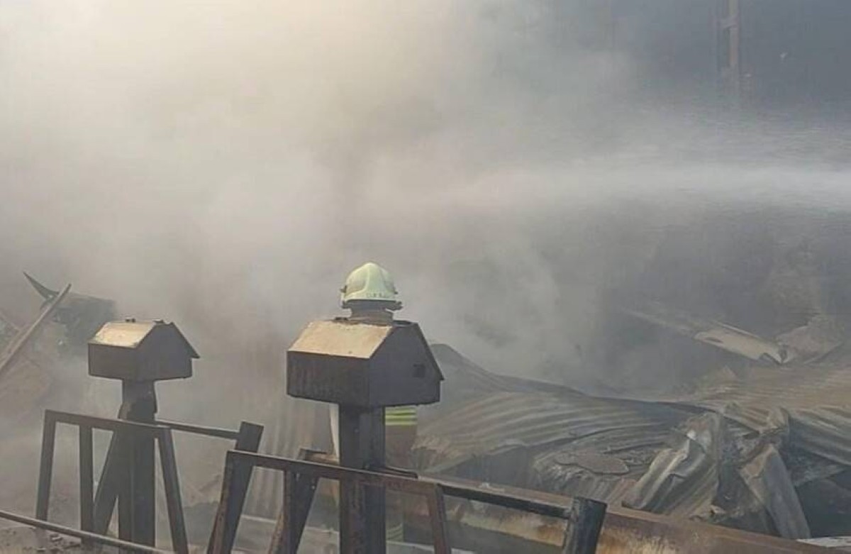 وتعمل فرق الطوارئ على السيطرة على الحريق وإخلاء المنطقة.