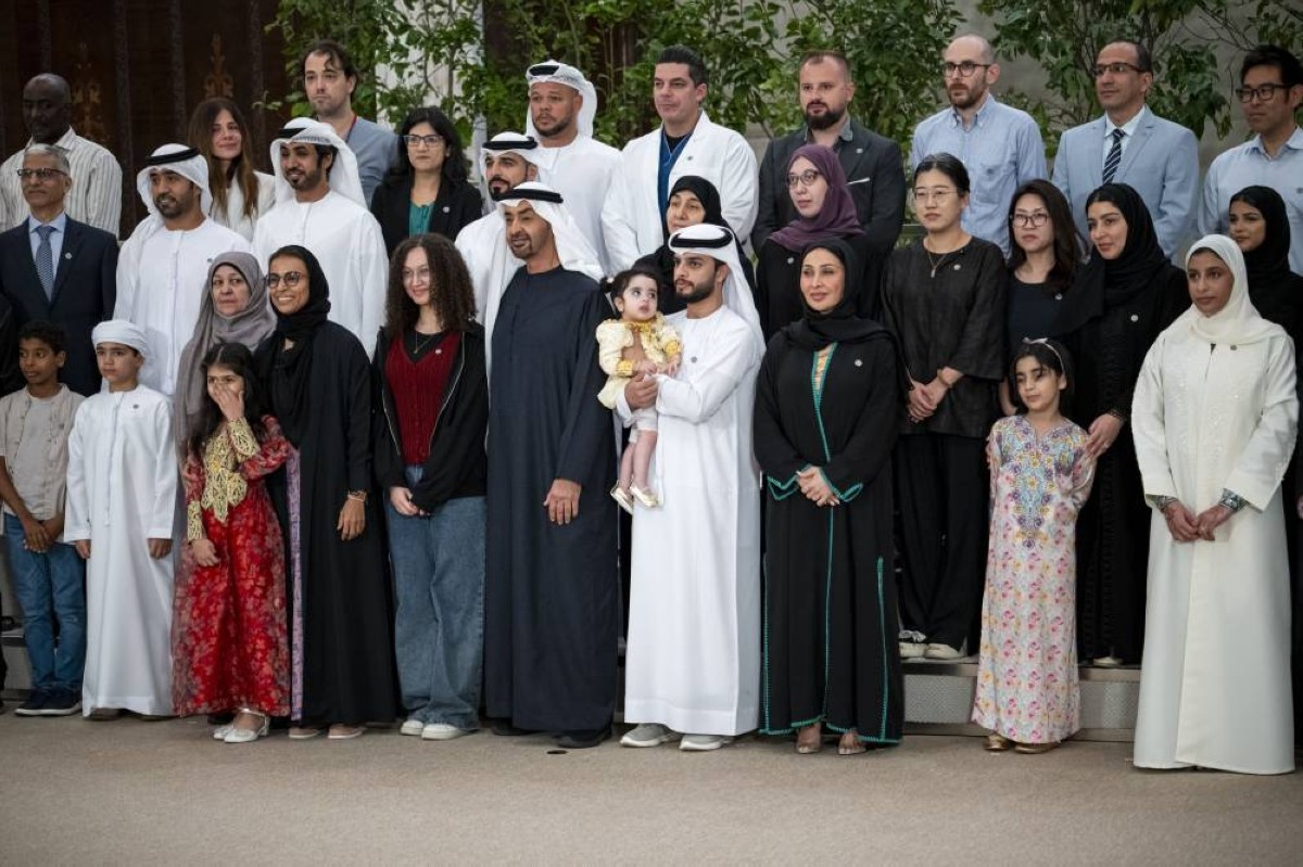 استقبل صاحب السمو الشيخ محمد بن زايد آل نهيان رئيس الدولة "حفظه الله" اليوم وفد مركز أبوظبي للخلايا الجذعية ومستشفى ياس كلينك – مدينة خليفة يرافقه عدد من المتبرعين والمرضى الذين جرى علاجهم بتقنيات مبتكرة تعتمد على الخلايا الجذعية.
