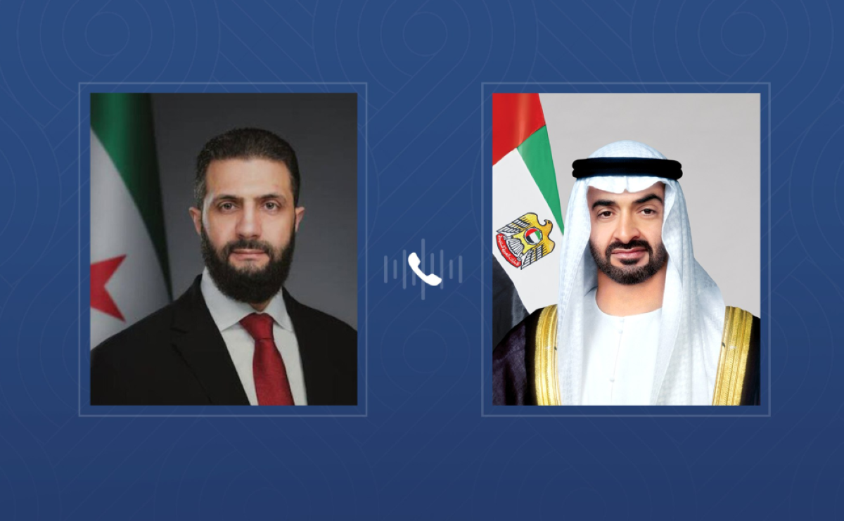 تلقى صاحب السمو الشيخ محمد بن زايد آل نهيان رئيس الدولة "حفظه الله" اليوم اتصالاً هاتفياً من فخامة أحمد الشرع رئيس الجمهورية العربية السورية، بحثا خلاله مستجدات الأوضاع في المنطقة إثر التصعيد العسكري وتداعياته الخطيرة على أمنها واستقرارها..مؤكدين أهمية تغليب الحوار والوسائل الدبلوماسية في معالجة القضايا العالقة في المنطقة بما يحفظ الأمن والاستقرار الإقليمي والدولي.
