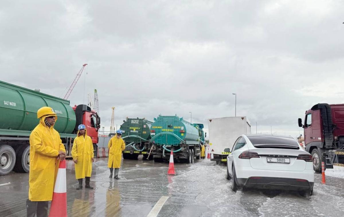 نشر مئات صهاريج ومضخات سحب المياه وآلاف العمال والمهندسين في كافة الشوارع الرئيسية في دبي