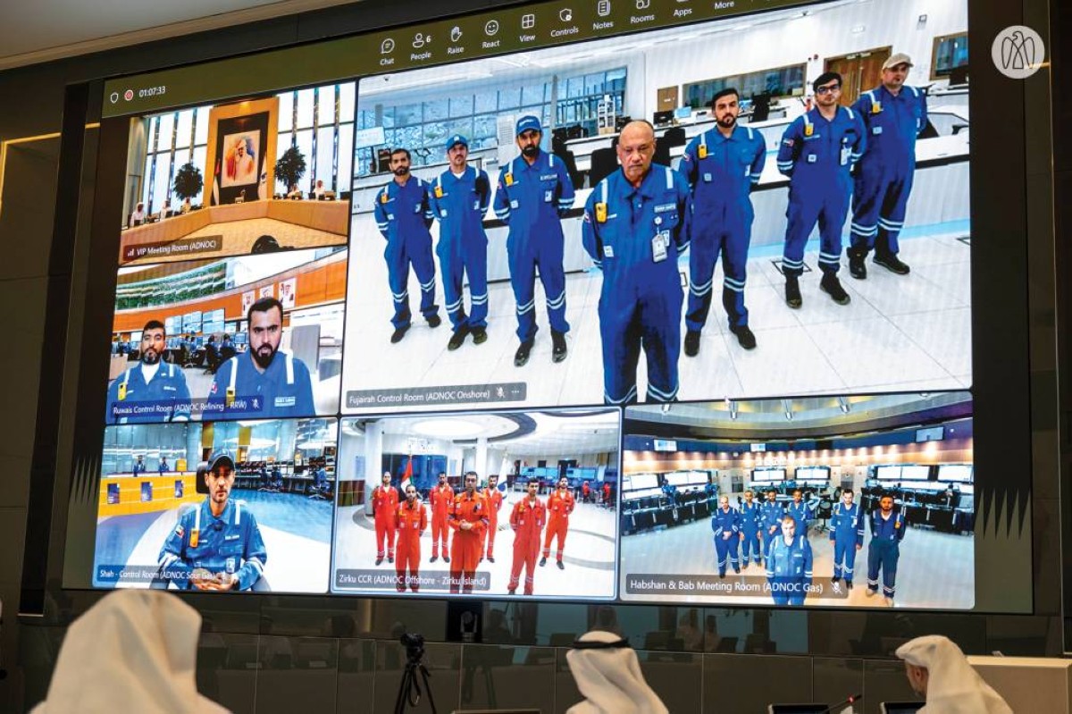 وخلال الاجتماع، التقى سموّه أعضاء فريق استمرارية الأعمال في "أدنوك"، ووجه سموّه رسالة إلى فرق الخطوط الأمامية في مواقع الشركة، عبر تقنية الاتصال المرئي عن بُعد، أشاد خلالها بالروح المعنوية العالية التي يتحلى بها جميع الكوادر، وبما أبدوه من تفانٍ وإخلاص في العمل لتجاوز الظروف والتحديات الراهنة بعزيمة وثبات.