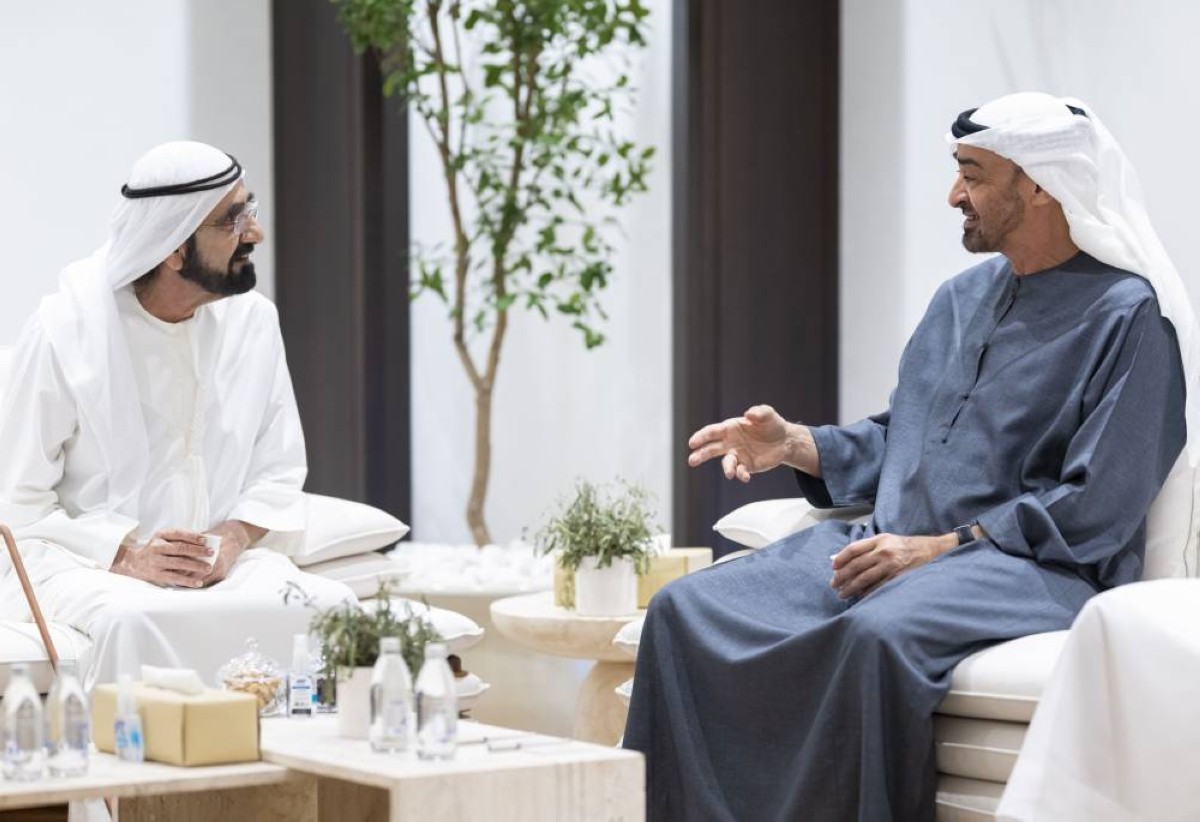 التقى صاحب السمو الشيخ محمد بن زايد آل نهيان، رئيس الدولة، حفظه الله، أخاه صاحب السمو الشيخ محمد بن راشد آل مكتوم، نائب رئيس الدولة رئيس مجلس الوزراء حاكم دبي، رعاه الله، بحضور سمو الشيخ منصور بن زايد آل نهيان، نائب رئيس الدولة نائب رئيس مجلس الوزراء رئيس ديوان الرئاسة.
