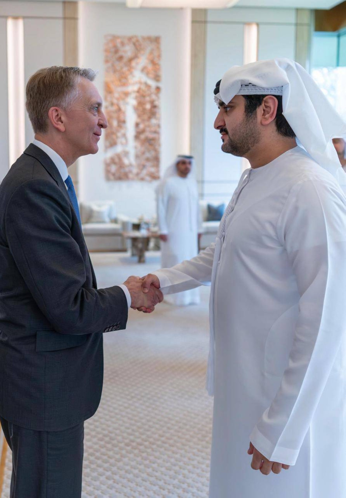 التقى سمو الشيخ مكتوم بن محمد بن راشد آل مكتوم، النائب الأول لحاكم دبي، نائب رئيس مجلس الوزراء، وزير المالية، بروس فلات، الرئيس التنفيذي لمجموعة بروكفيلد لإدارة الأصول والاستثمارات البديلة، وناقش معه سبل توسيع آفاق التعاون بما يسهم في صناعة واستقطاب نماذج استثمارية نوعيّة ومستدامة ونقل الخبرات العالمية إلى الإمارات ودبي، مؤكداً سموه أن اختيار الشركات العالمية لدبي يعكس اتجاهاً ثابتاً للمستثمرين الباحثين عن النجاح الاقتصادي والبنى التحتية المتميزة والبيئة الداعمة للابتكار، لأن دبي هي أرض الفرص الواعدة.
