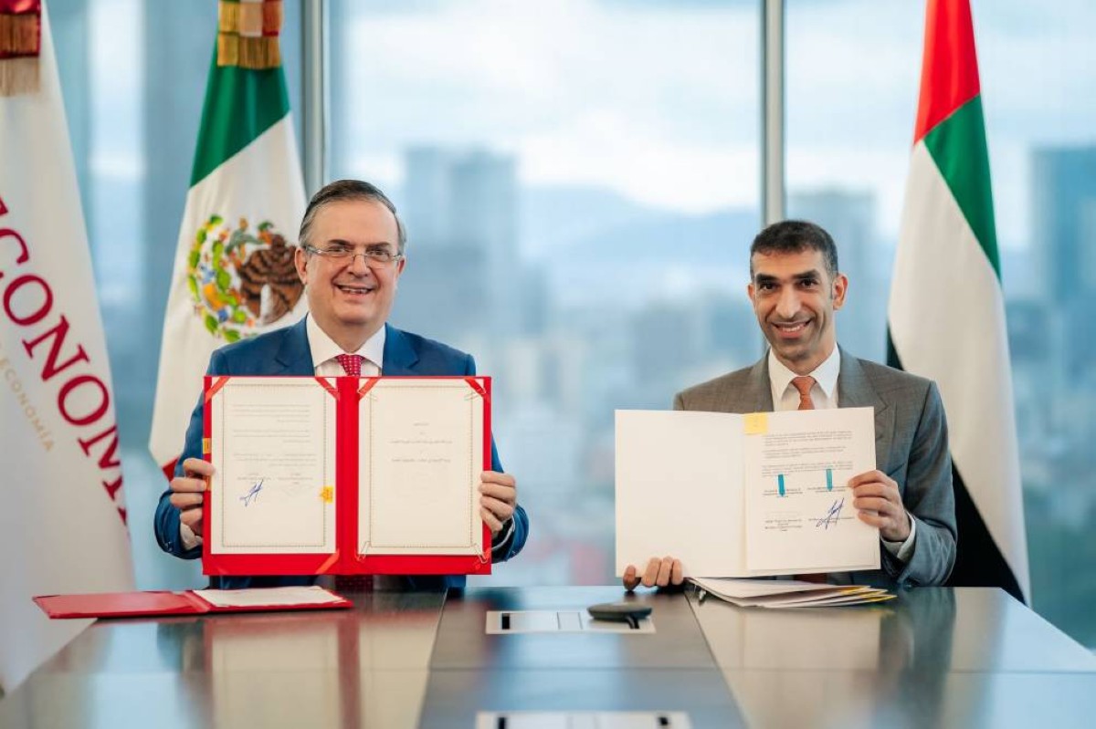 وجرى التوقيع على الشروط المرجعية للتفاوض بشأن اتفاقية شراكة اقتصادية شاملة بين دولة الإمارات والولايات المتحدة المكسيكية، وقعها معالي الدكتور ثاني بن أحمد الزيودي، وزير دولة للتجارة الخارجية، ومعالي مارسيلو لويس إبرارد، وزير الاقتصاد المكسيكي.