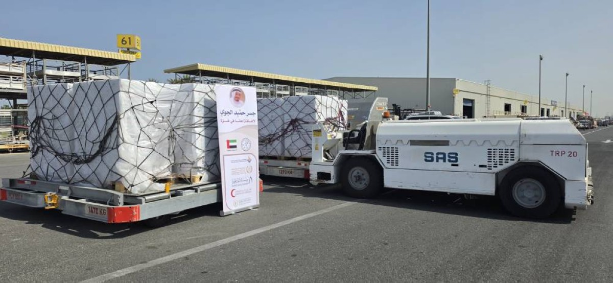 انطلقت، صباح اليوم من مطار الشارقة الدولي، طائرة إغاثة تضم أكثر من 100 طن من المساعدات والمواد الغذائية الأساسية لإغاثة الأشقاء في قطاع غزة، ضمن حملة الإغاثة لمبادرة "جسر حميد الجوي"، والتي تأتي بتوجيهات من صاحب السمو الشيخ حميد بن راشد النعيمي عضو المجلس الأعلى حاكم عجمان، وبالتعاون مع عملية "الفارس الشهم 3"، وذلك في إطار الجهود الإنسانية لدولة الإمارات لدعم الأشقاء في القطاع.