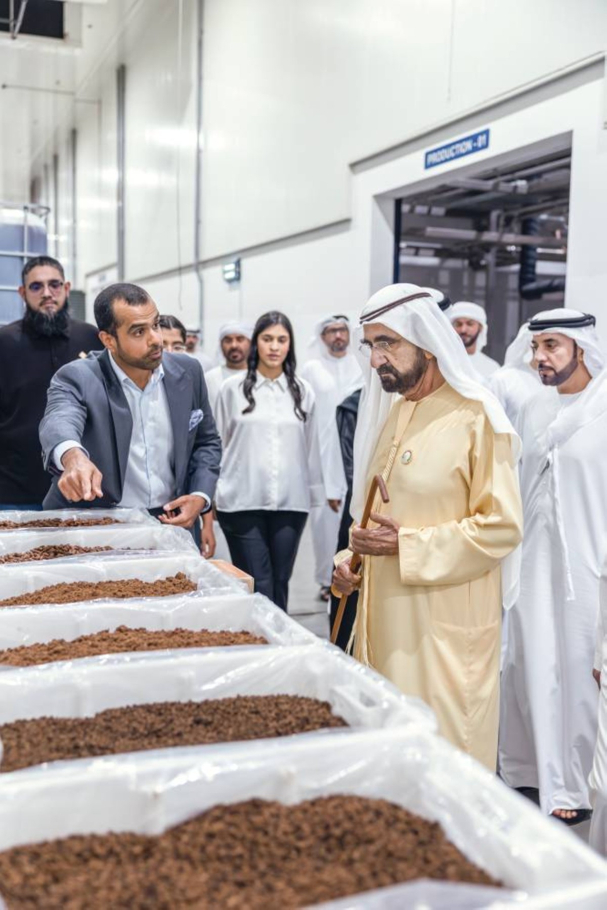 وخلال جولته في المصنع، استمع صاحب السمو الشيخ محمد بن راشد آل مكتوم من مؤسس المصنع، رجل الأعمال سليم محمد، ونجله يوسف سليم محمد، مدير المصنع، إلى شرح حول خطوط الإنتاج ومراحل التصنيع والتعبئة، واستمع إلى شرح حول المنتجات المتنوعة التي يقدمها المصنع، التي تشمل التمور المعلبة، ودبس التمر، ومعجون التمر، وبودرة التمر.
