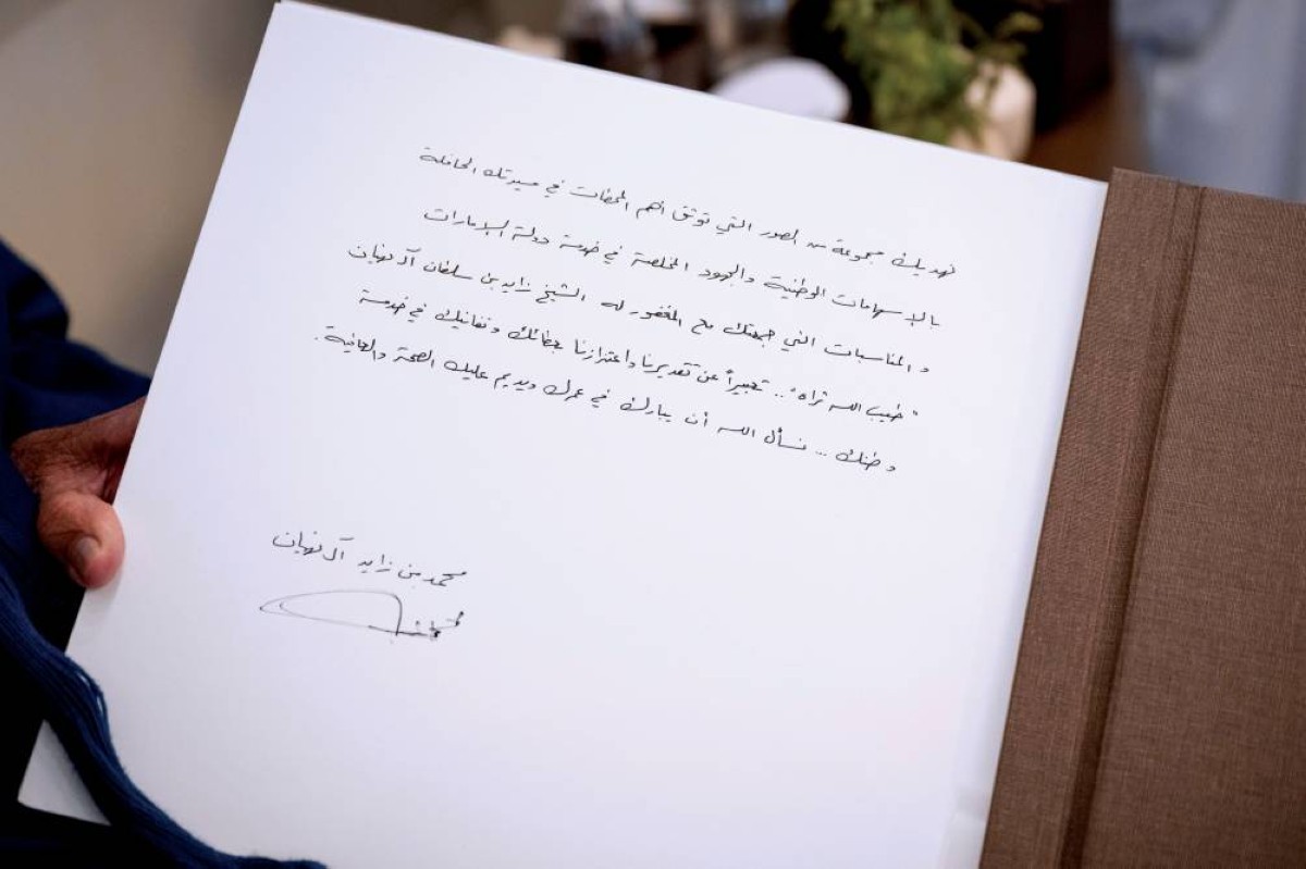 وقال صاحب السمو رئيس الدولة : " نعبر من خلال هذه المبادرة الرمزية عن تقديرنا واعتزازنا بعطائك وتفانيك في خدمة وطنك..ونسأل الله تعالى أن يبارك في عمرك ويديم عليك الصحة والعافية".