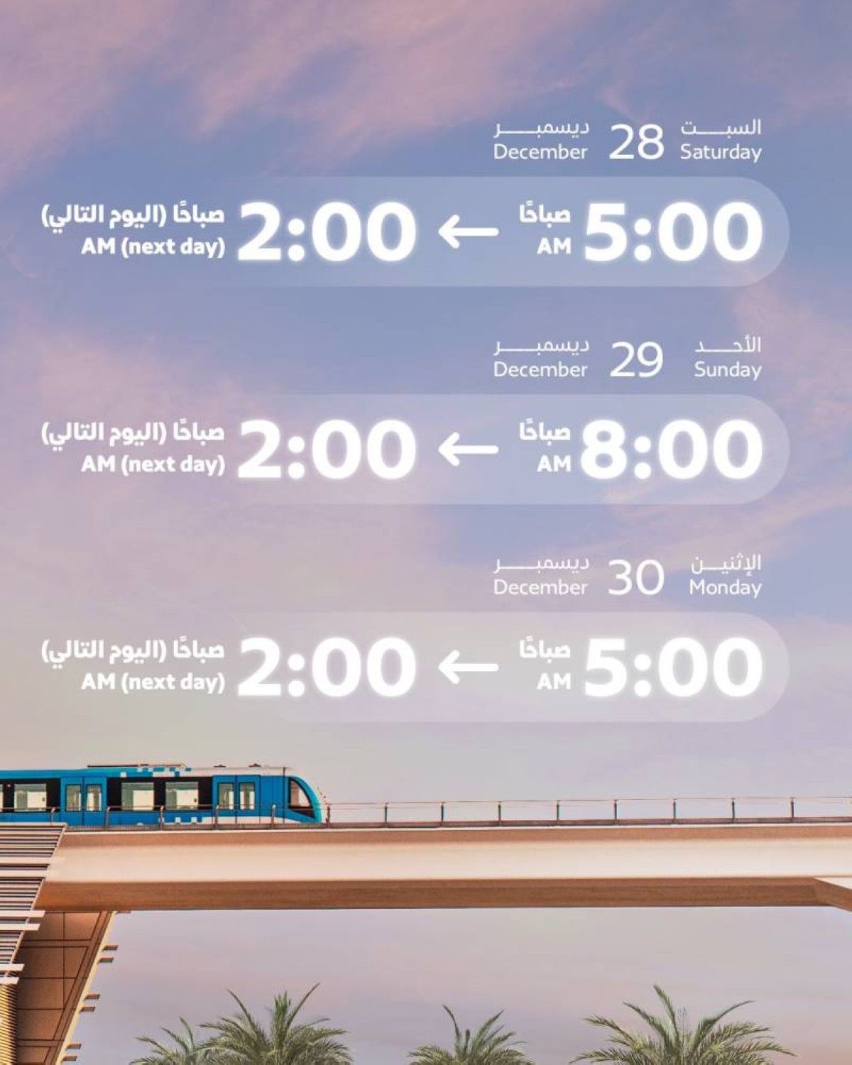 هذا التمديد يأتي في إطار التزام الهيئة بتقديم خدمات متميزة تلبي احتياجات سكان دبي وزوارها خلال موسم الأعياد وزيادة حركة السفر.