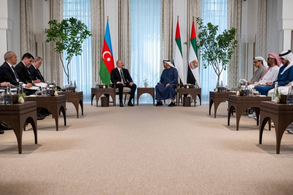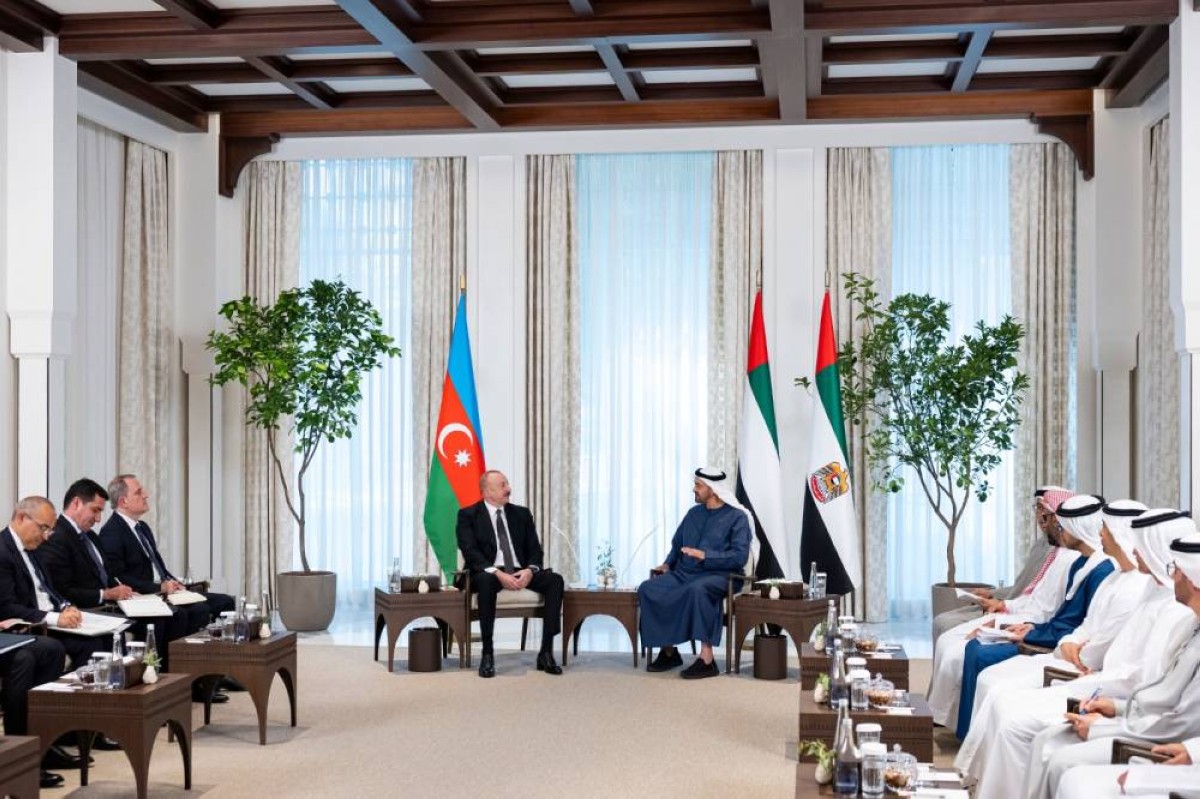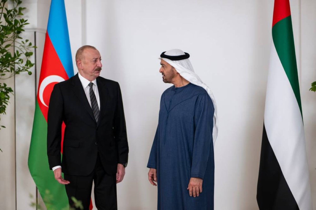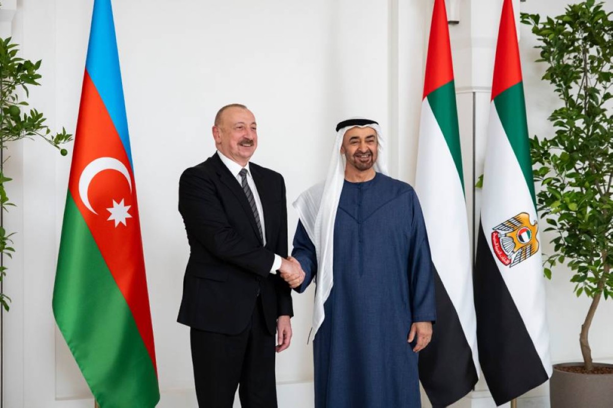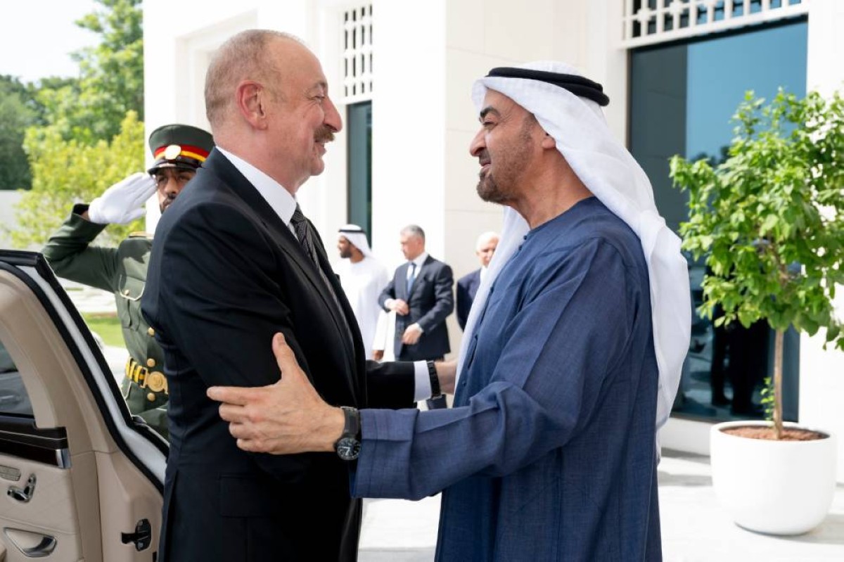 بحث صاحب السمو الشيخ محمد بن زايد آل نهيان رئيس الدولة "حفظه الله"، وفخامة إلهام علييف رئيس جمهورية أذربيجان اليوم، علاقات البلدين وإمكانيات تعزيز التعاون والعمل المشترك بينهما لتوسيع آفاقها خاصة في مجالات الاقتصاد والاستثمار والأمن الغذائي والطاقة المتجددة والعمل البيئي وغيرها من الجوانب التي تخدم المصالح المشتركة وتسهم في تحقيق أهداف التنمية المستدامة في البلدين.
