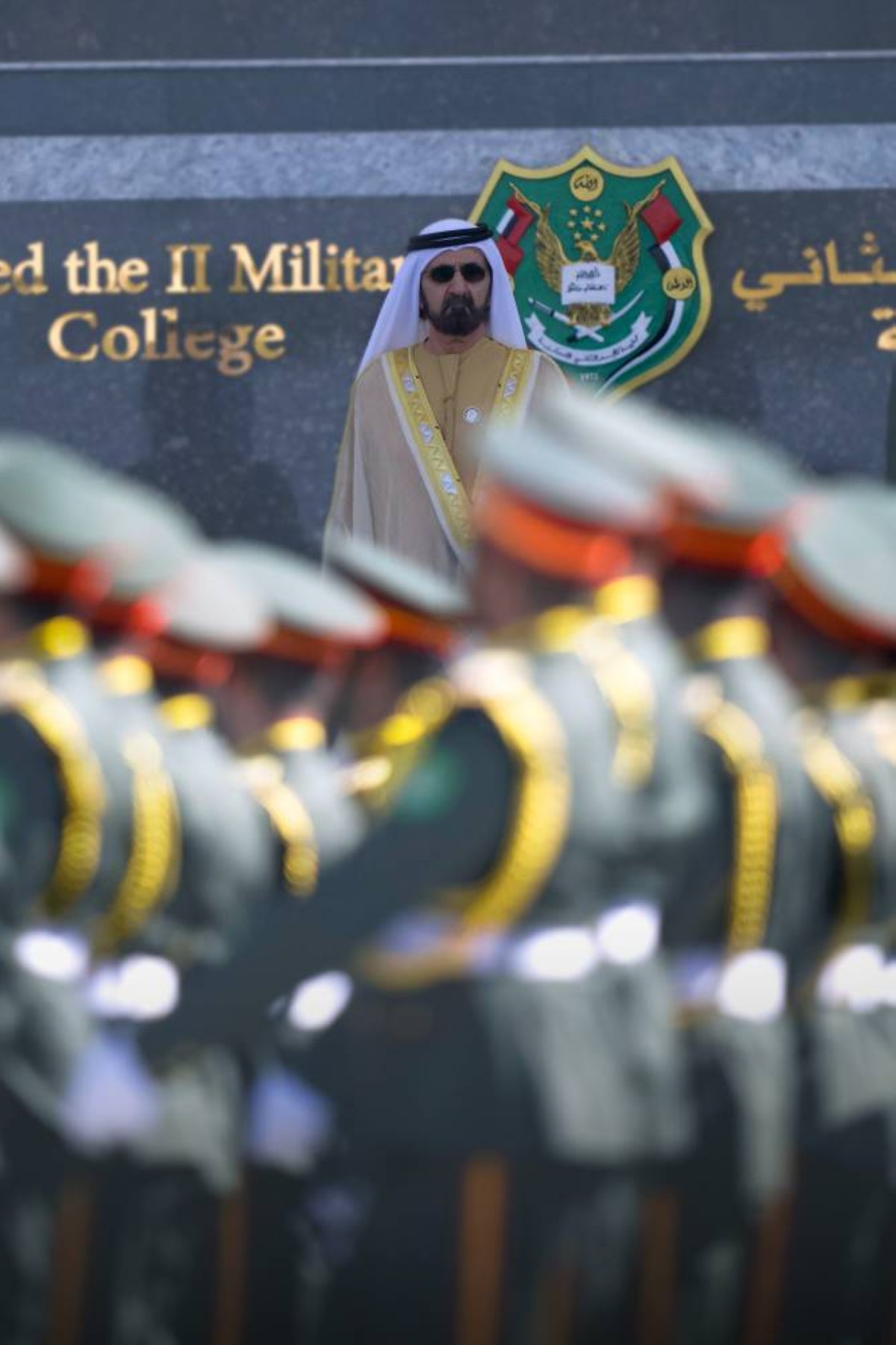 وهنّأ صاحب السموّ الشيخ محمد بن راشد آل مكتوم الخريجين، على تفوقهم وما أبدوه من التزام خلال فترة الدراسة الأكاديمية أهّلهُم إلى هذا التفوق، داعياً سموّه إياهم للحفاظ على نهج الالتزام في حياتهم العملية مع التحاقهم بصفوف القوات المسلحة، ليكونوا دائماً النموذج والقدوة في خدمة الوطن والعمل على رفعته وصون مقدراته وتعزيز إنجازاته وإعلاء رايته في كافة المحافل رمزاً لشموخ دولتنا وعزة وكرامة شعبها الأبيّ.