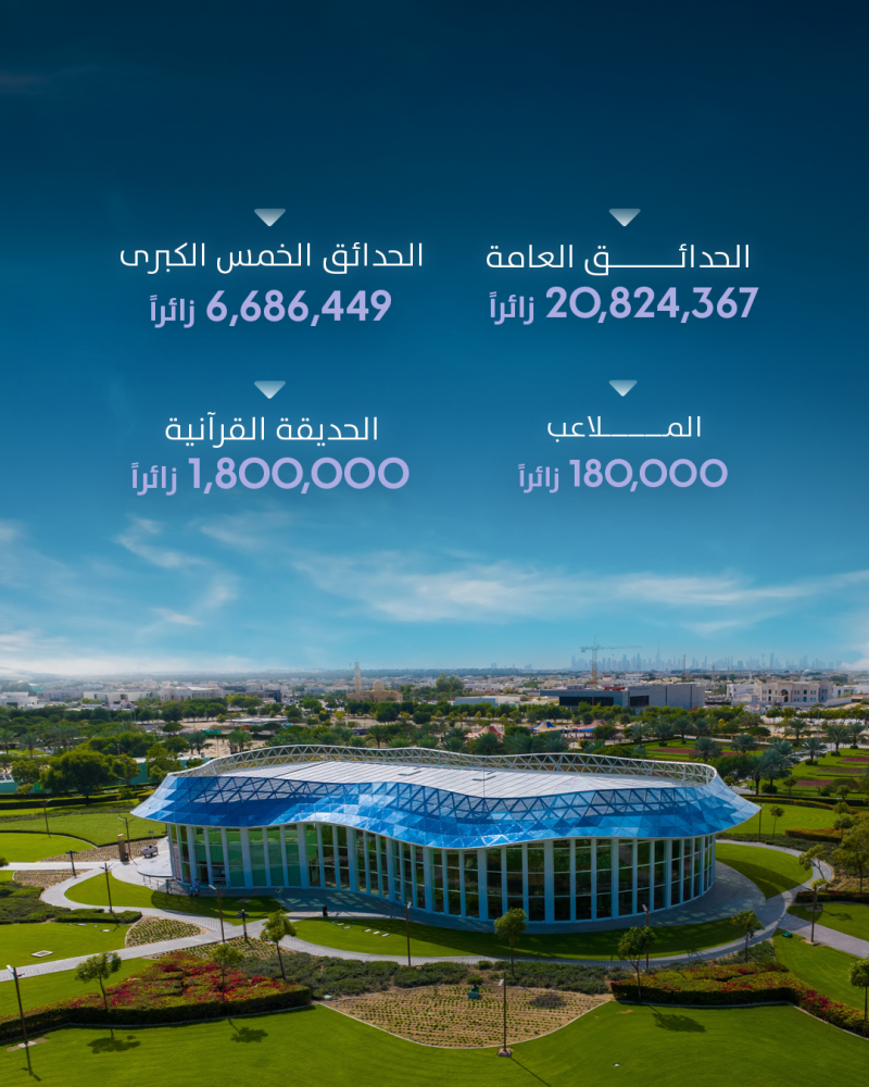 وتوزع زوار العام الماضي بواقع 20 مليون و824 ألف و367 زائراً للحدائق العامة، كما استقبلت الحدائق الخمس الكبرى (زعبيل، ومشرف الوطنية، والممزر، والخور، والصفا) 6 ملايين و686 ألف و449 زائراً. وبلغ عدد زوار الحديقة القرآنية نحو مليون و800 ألف زائر، وبرواز دبي مليون و593 ألف و395 زائراً، ومدينة الطفل أكثر من 112 ألف زائر. كما حققت المضامير المخصصة للدراجات الهوائية والجبلية ومضامير المشاة في حدائق ومرافق البلدية زياراتٍ وصلت إلى مليون و491 ألف و869 زائراً، إضافةً إلى 180 ألف زائر للملاعب.