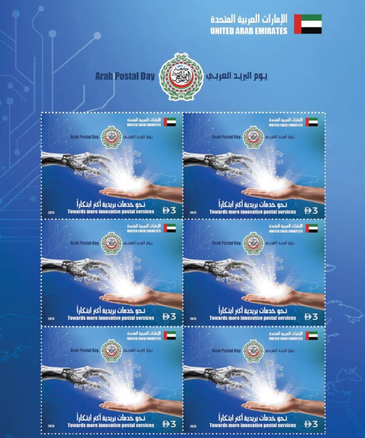 أصدر بريد الإمارات، بالتنسيق مع نظرائه من هيئات البريد العربية، طابعاً بريدياً تذكارياً موحداً احتفاءً بيوم البريد العربي الذي يوافق الثالث من أغسطس من كل عام، وتأكيداً على الدور الحيوي للقطاع البريدي في خدمة المجتمعات وتعزيز التنمية الاقتصادية والاجتماعية.