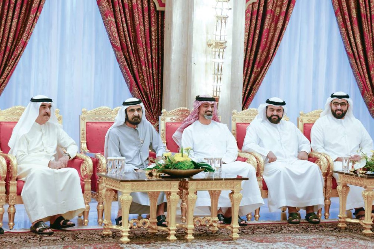 استقبل صاحب السمو الشيخ محمد بن راشد آل مكتوم، نائب رئيس الدولة رئيس مجلس الوزراء حاكم دبي، رعاه الله، في قصر زعبيل أمس، أخاه صاحب السمو الشيخ سعود بن راشد المعلا، عضو المجلس الأعلى حاكم أم القيوين، بحضور سمو الشيخ حمدان بن محمد بن راشد آل مكتوم، ولي عهد دبي نائب رئيس مجلس الوزراء وزير الدفاع رئيس المجلس التنفيذي لإمارة دبي، وسمو الشيخ أحمد بن محمد بن راشد آل مكتوم، النائب الثاني لحاكم دبي، وسمو الشيخ عمار بن حميد النعيمي، ولي عهد عجمان، وسمو الشيخ محمد بن حمد بن محمد الشرقي، ولي عهد الفجيرة، وسمو الشيخ راشد بن سعود بن راشد المعلا، ولي عهد أم القيوين، وسمو الشيخ هزاع بن زايد آل نهيان، ممثل حاكم أبوظبي في منطقة العين.