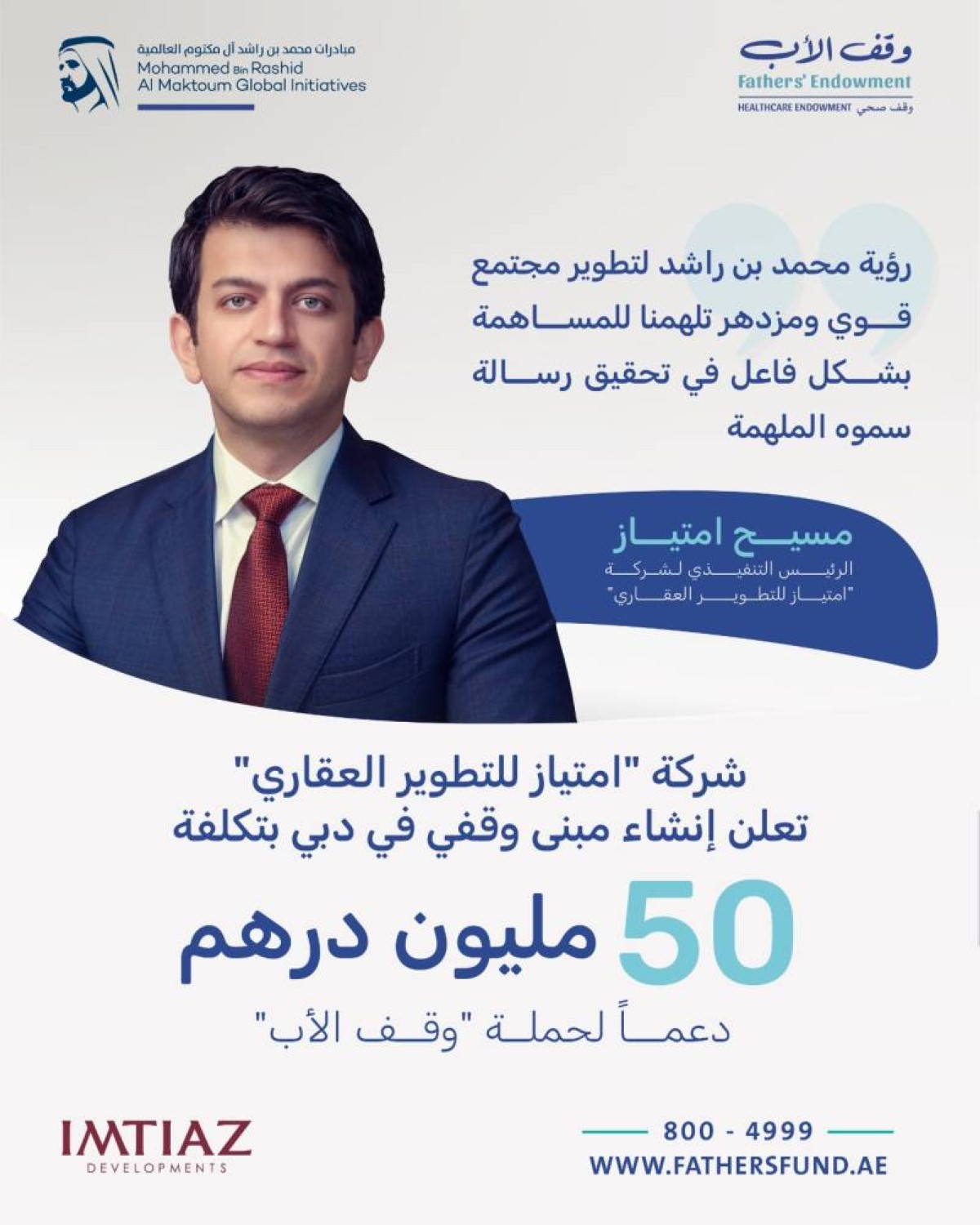 شركة "امتياز للتطوير العقاري" تعلن إنشاء مبنى وقفي في دبي بتكلفة 50 مليون درهم دعماً لحملة "وقف الأب"