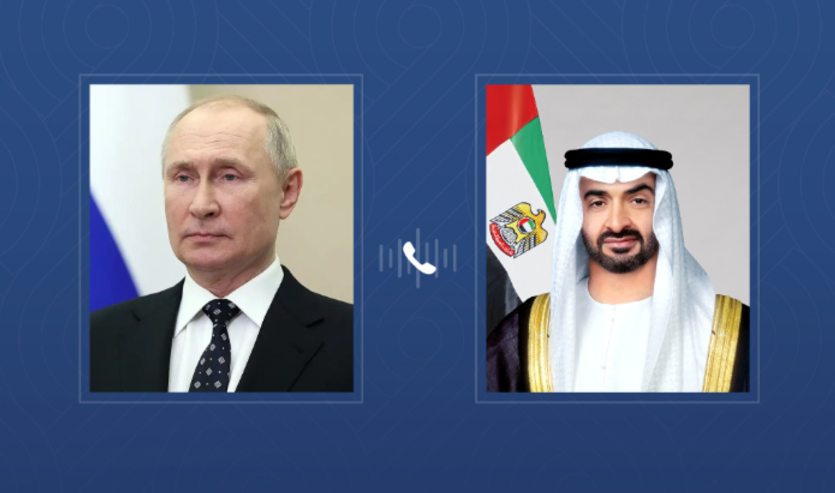 تلقى صاحب السمو الشيخ محمد بن زايد آل نهيان رئيس الدولة "حفظه الله" اتصالاً هاتفياً من فلاديمير بوتين رئيس روسيا الاتحادية.. بحثا خلاله مختلف جوانب التعاون الثنائي وسبل تعزيزه وتطويره وذلك في إطار الشراكة الإستراتيجية التي تجمع البلدين وبما يخدم مصالحهما المشتركة.. مؤكدين حرصهما على مواصلة تعزيز هذه العلاقات على مختلف المستويات بما يعود بالخير على شعبيهما.
