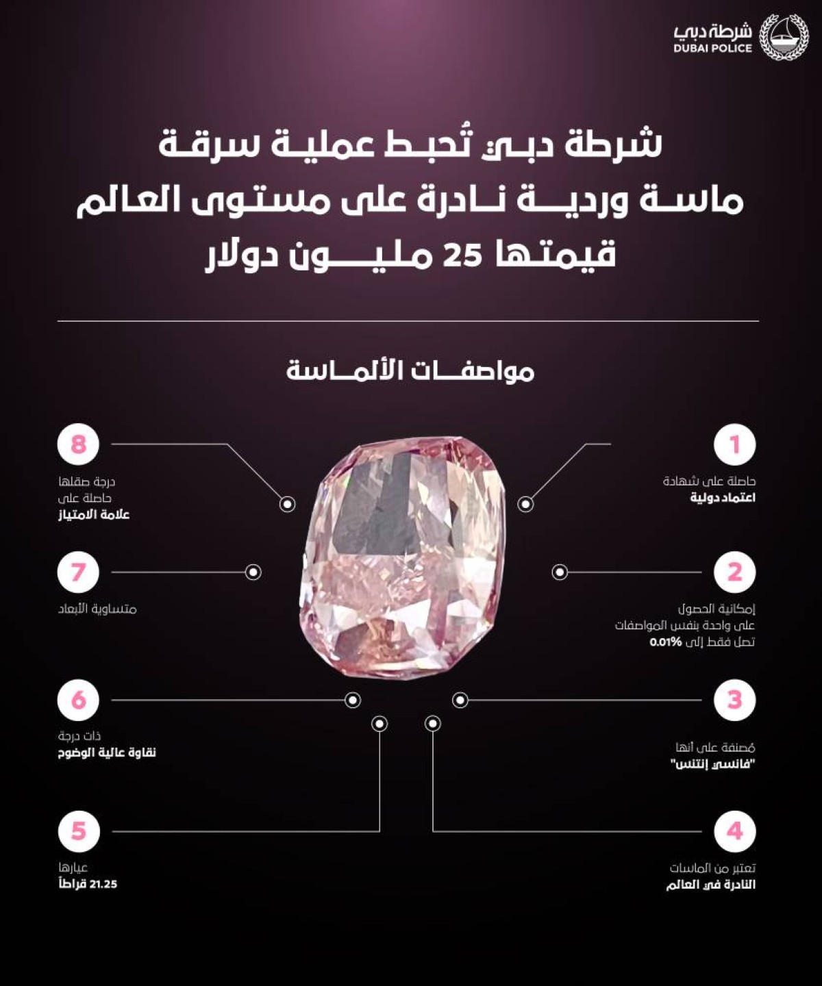 "شرطة دبي" تحبط سرقة ماسة وردية نادرة بـ 25 مليون دولار