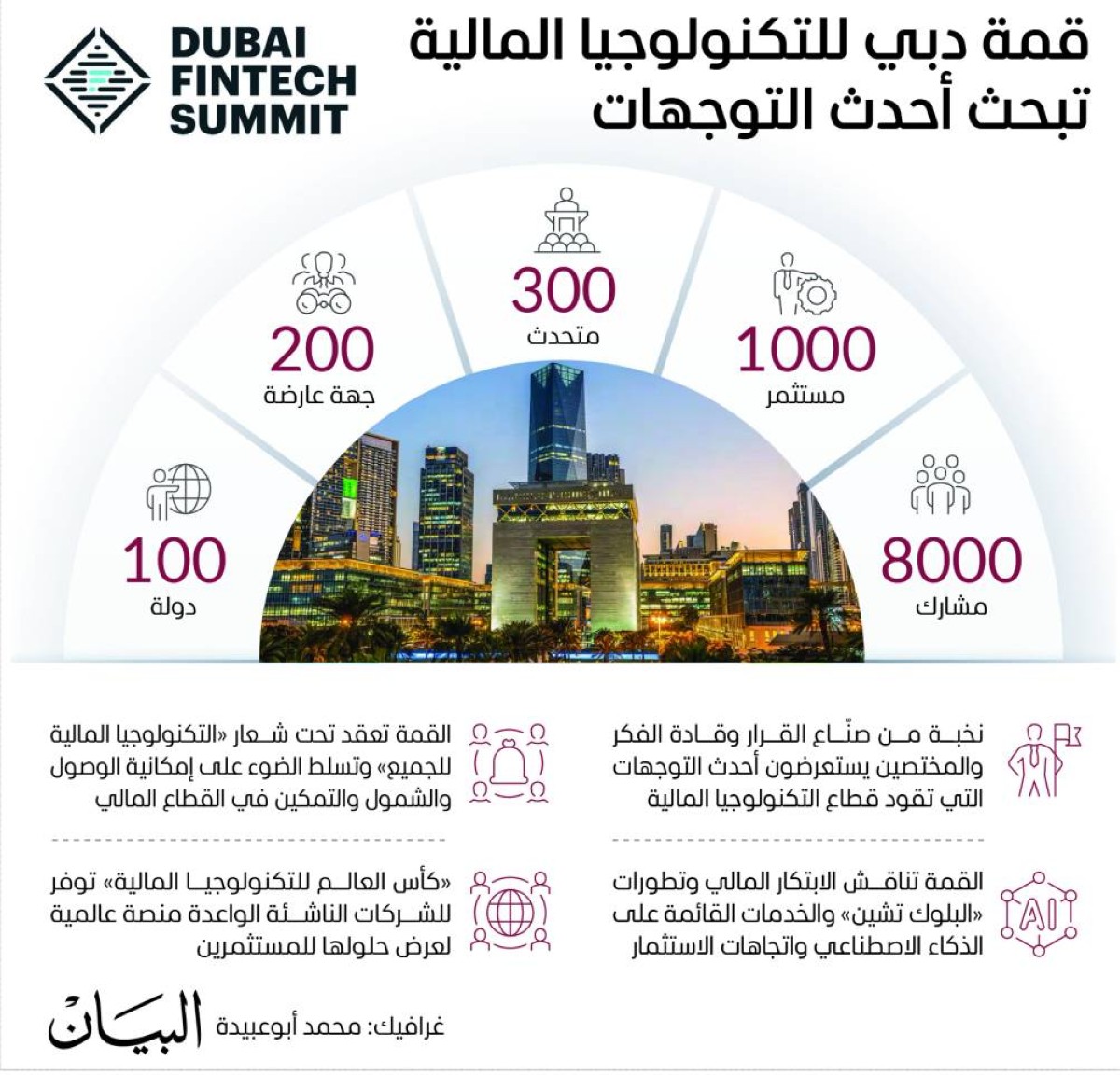 يشار إلى أن التسجيل في قمة دبي للتكنولوجيا المالية مفتوح الآن على الموقع الإلكتروني dubaifintechsummit.com.