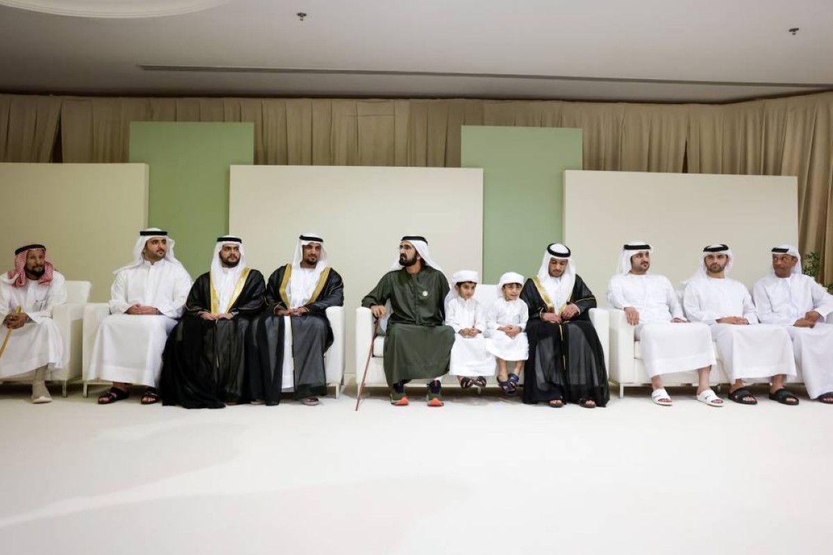 حضر صاحب السمو الشيخ محمد بن راشد آل مكتوم، نائب رئيس الدولة، رئيس مجلس الوزراء، حاكم دبي، رعاه الله، حفل الاستقبال الذي أقامه محمد راشد بن غدير وسعيد حمد ملهوف وغدير سعيد بن غدير أمس، في قاعة الرمال بدبي بمناسبة زفاف أنجالهم راشد محمد راشد بن غدير إلى كريمة سالم راشد بن غدير، ومحمد سعيد حمد ملهوف إلى كريمة سالم راشد بن غدير، وسالم غدير سعيد بن غدير إلى كريمة راشد سيف المقعودي.
