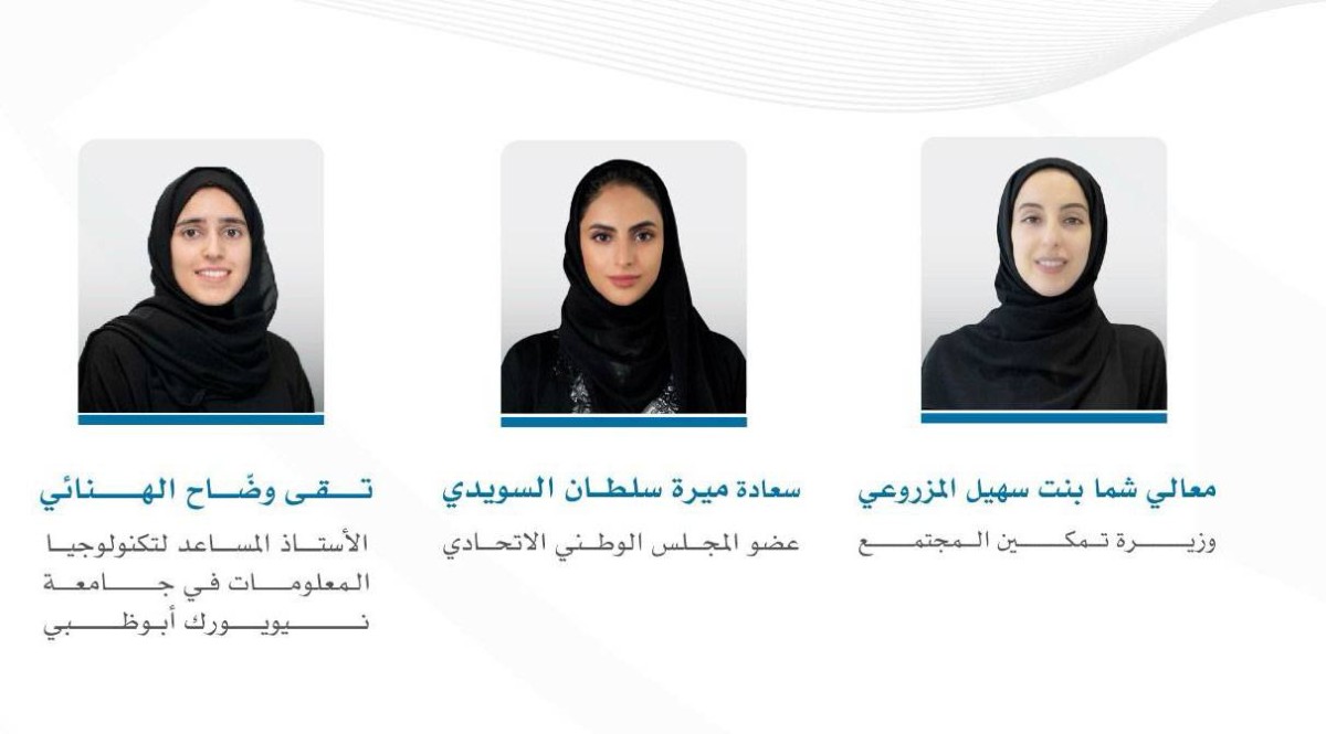 أعلن منتدى الاقتصاد العالمي اختيار معالي شما بنت سهيل المزروعي، وزيرة تمكين المجتمع، وسعادة ميرة سلطان السويدي، عضو المجلس الوطني الاتحادي، وتقى وضاح الهنائي، الأستاذ المساعد لتكنولوجيا المعلومات في جامعة نيويورك أبوظبي، لعضوية مجلس القيادات العالمية الشابة 2025.