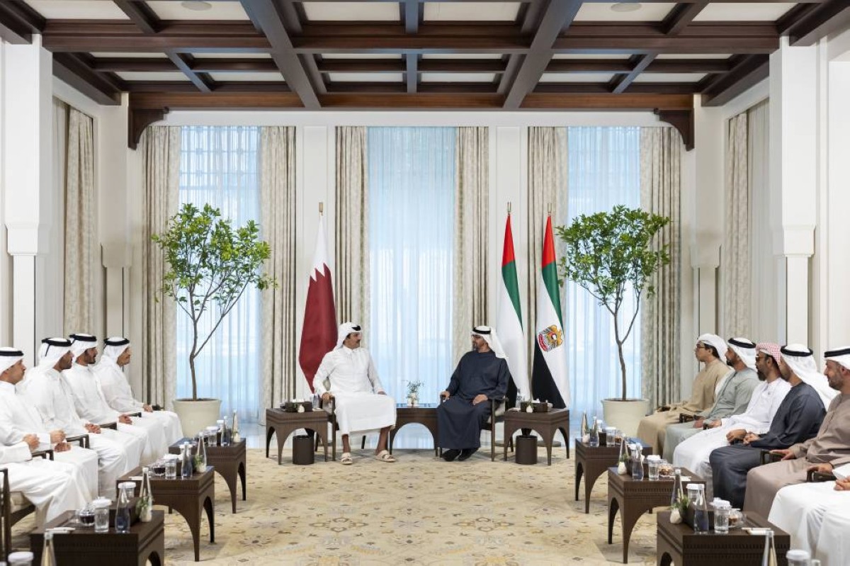 وكان صاحب السمو الشيخ تميم بن حمد آل ثاني، قد وصل في وقت سابق اليوم إلى أبوظبي، في زيارة أخوية إلى الدولة، حيث كان في مقدمة مستقبليه، صاحب السمو الشيخ محمد بن زايد آل نهيان، وعدد من سمو الشيوخ وكبار المسؤولين.