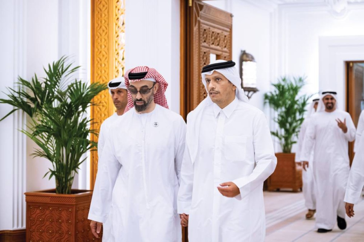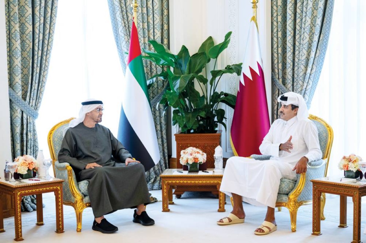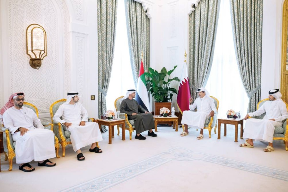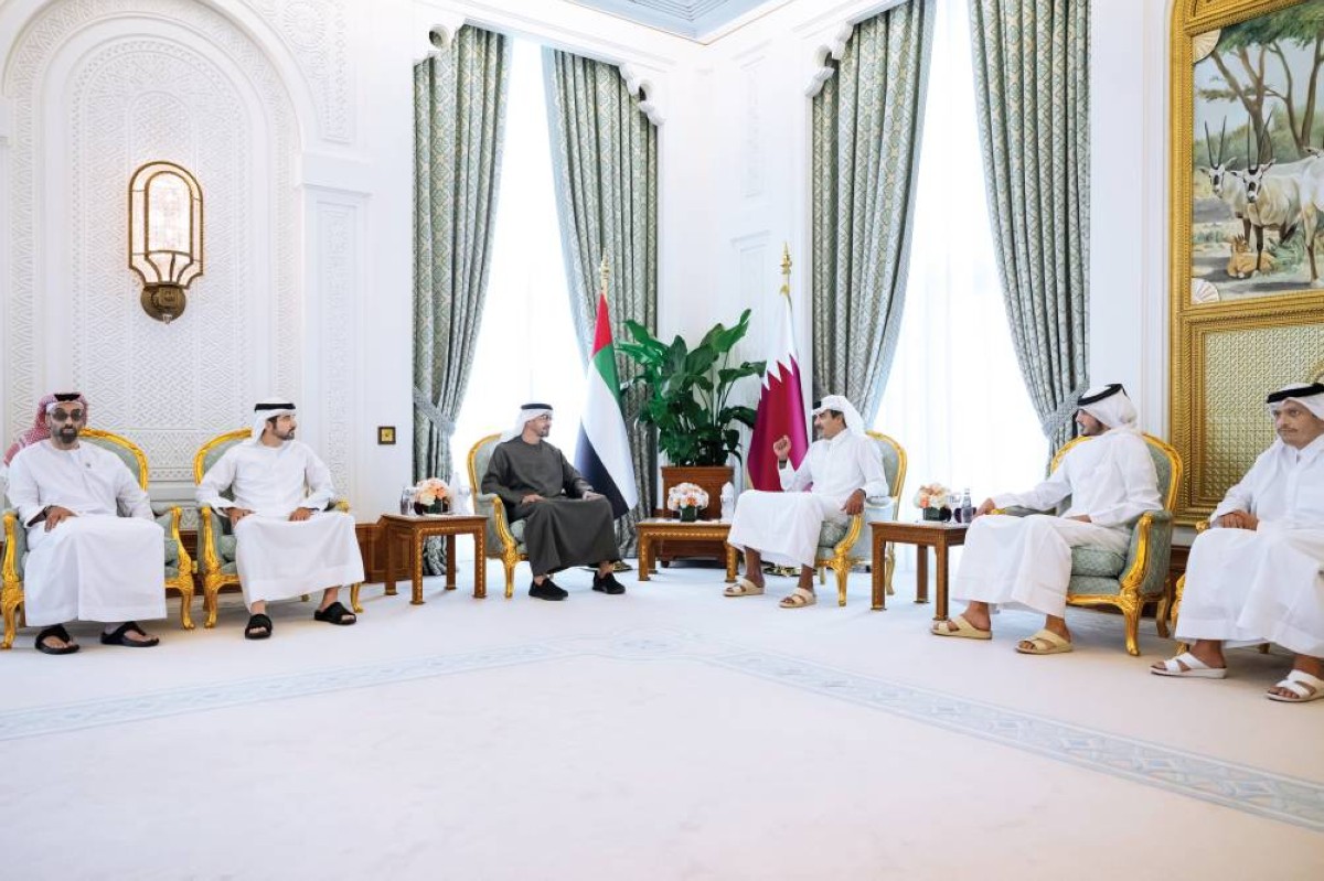 جاء ذلك خلال لقاء صاحب السمو رئيس الدولة أخاه صاحب السمو الشيخ تميم بن حمد آل ثاني في الديوان الأميري في الدوحة في زيارة أخوية إلى قطر.