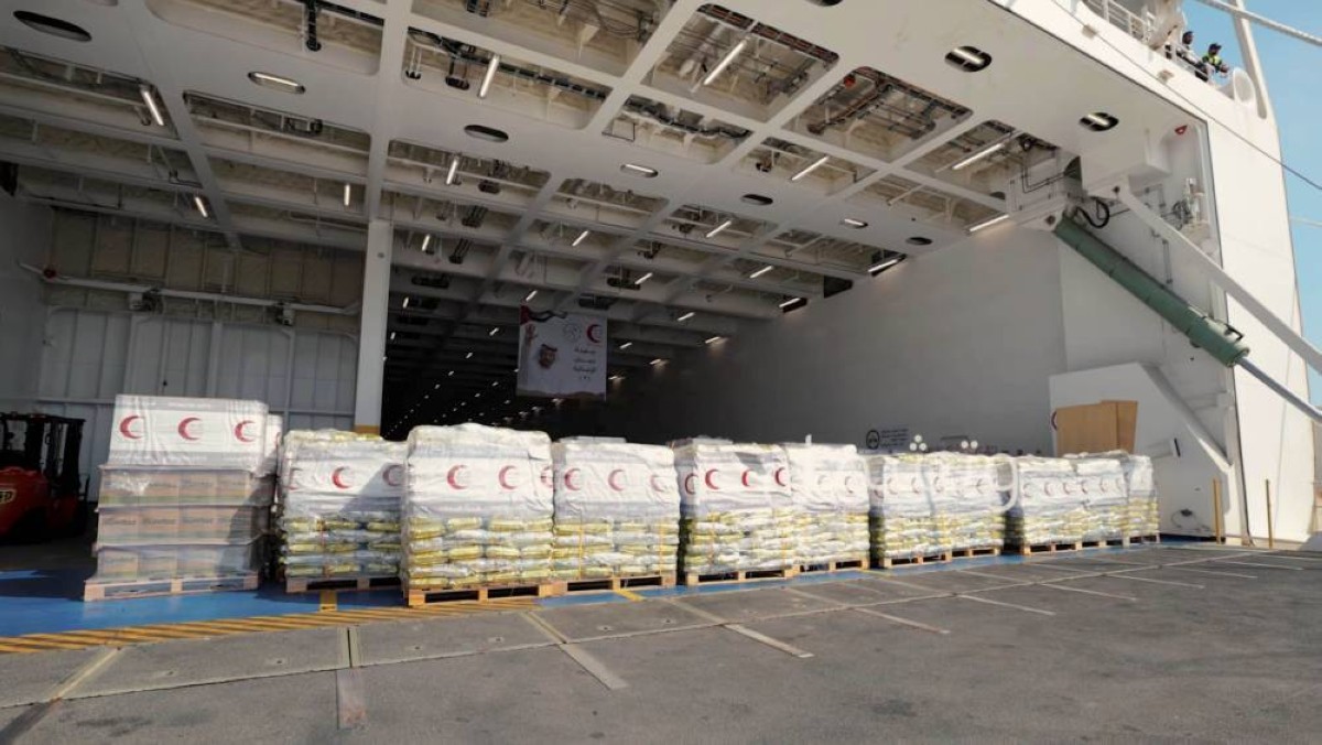 وتضم حمولة السفينة 5000 طن من الطرود الغذائية، و1900 طن من المواد الغذائية المخصصة لدعم المطابخ الشعبية، و100 طن من الخيام الطبية لتعزيز القطاع الصحي، إضافة إلى 5 سيارات إسعاف مجهزة.