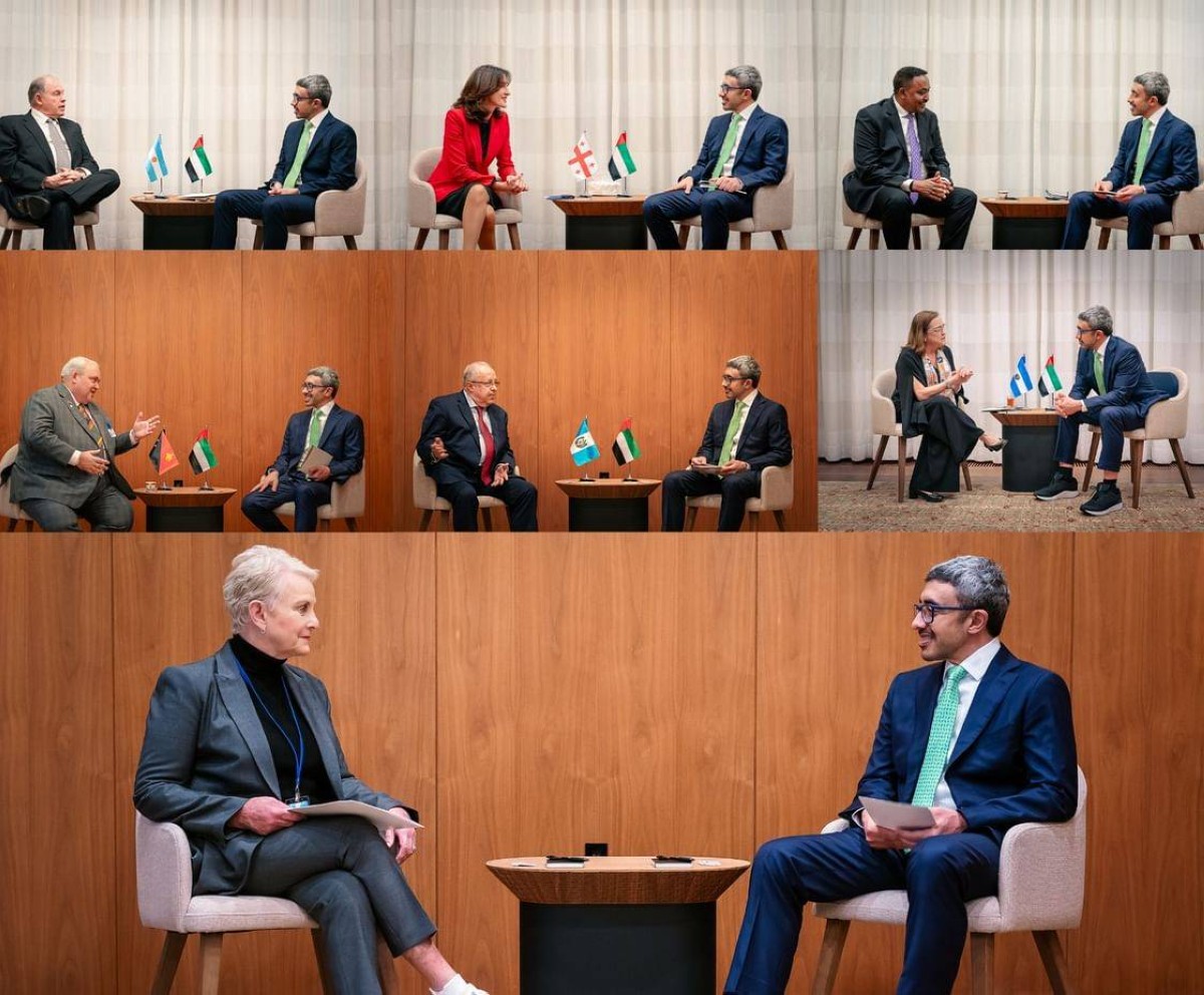 وأكد سمو الشيخ عبدالله بن زايد آل نهيان، خلال اللقاءات، دعم دولة الإمارات للتعاون الدولي البنّاء والمسؤول، والعمل متعدد الأطراف لمواجهة التحديات المشتركة، وترسيخ أسس السلام والاستقرار في المجتمعات، وتحقيق التنمية المستدامة للشعوب.