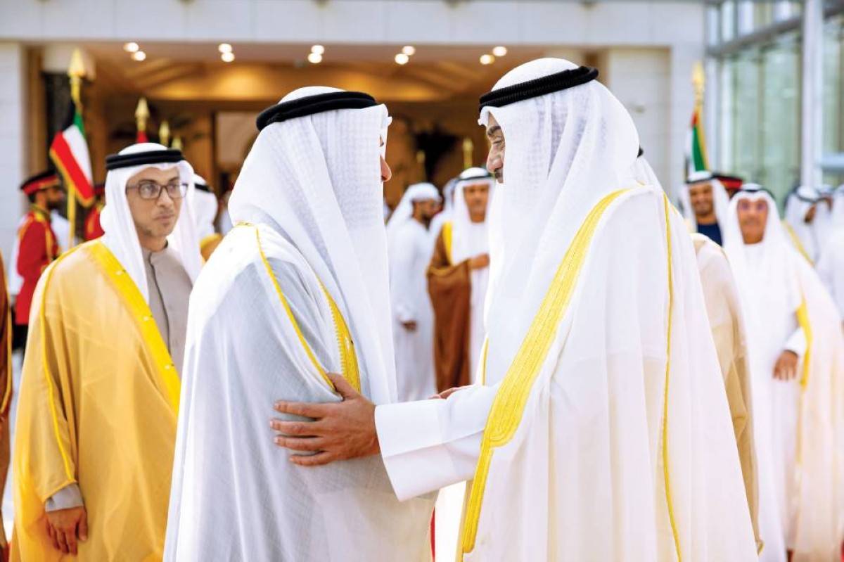 بحث صاحب السمو الشيخ محمد بن زايد آل نهيان رئيس الدولة، حفظه الله، مع أخيه صاحب السمو الشيخ مشعل الأحمد الجابر الصباح أمير دولة الكويت الشقيقة العلاقات الأخوية ومختلف جوانب التعاون والعمل المشترك ومستوى تطورهما وخاصة في المجالات التنموية والاقتصادية بما يخدم المصالح المتبادلة للبلدين ويعود بالخير والنماء على شعبيهما.