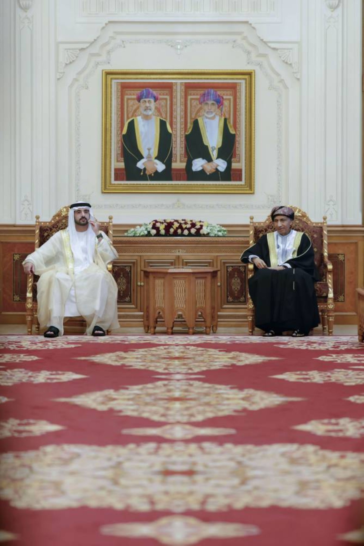 بحث سموّ الشيخ حمدان بن محمد بن راشد آل مكتوم، ولي عهد دبي، نائب رئيس مجلس الوزراء وزير الدفاع، اليوم في العاصمة العمانية مسقط، مع صاحب السموّ السيد فهد بن محمود آل سعيد، نائب رئيس مجلس الوزراء لشؤون مجلس الوزراء، الشراكة الاستراتيجية المزدهرة ضمن مختلف المجالات، والتي تستمد مقومات رسوخها من عمق العلاقات الأخوية بين الدولتين والشعبين الشقيقين.