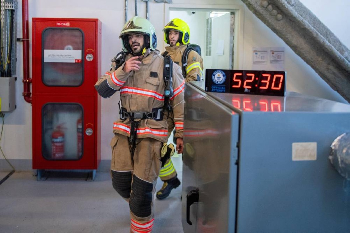 سجلت القيادة العامة للدفاع المدني في دبي إنجازاً عالمياً بإدراجها في موسوعة غينيس للأرقام القياسية، بعد أن حقق فريق من رجال الدفاع المدني رقماً قياسياً بلغ 52 دقيقة و30 ثانية، أسرع زمن لصعود برج خليفة (أطول برج في العالم) الذي يتكون من 159 طابقاً عبر السلالم، مع ارتداء الزي الكامل لبدلة الإطفاء التي بلغ وزنها الاجمالي مع إسطوانة الأوكسجين 15 كيلو غراماً.