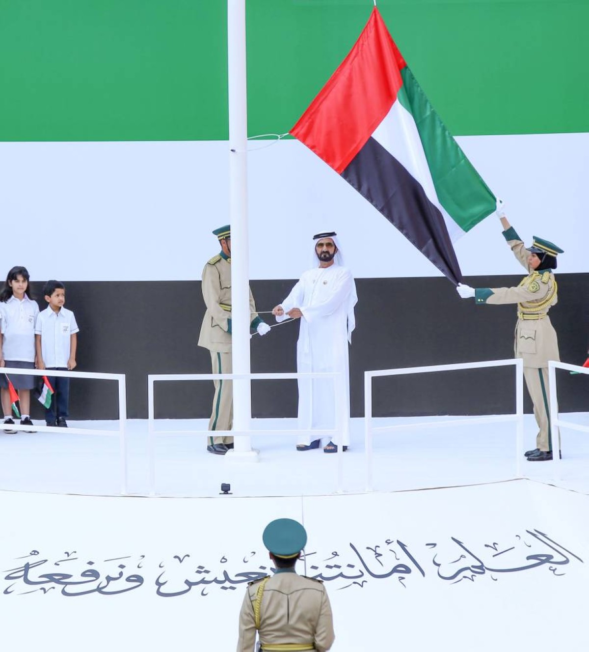 دعا صاحب السمو الشيخ محمد بن راشد آل مكتوم، نائب رئيس الدولة رئيس مجلس الوزراء حاكم دبي، رعاه الله، جميع المواطنين والمقيمين وكافة المؤسسات في الدولة إلى رفع علم الإمارات يوم الاثنين 3 نوفمبر عند تمام الساعة 11 صباحاً، تعبيراً عن تلاحم الشعب والتفافه حول رايته الوطنية، وتجسيداً لقيم الاتحاد والانتماء والوفاء للوطن وقيادته الرشيدة.