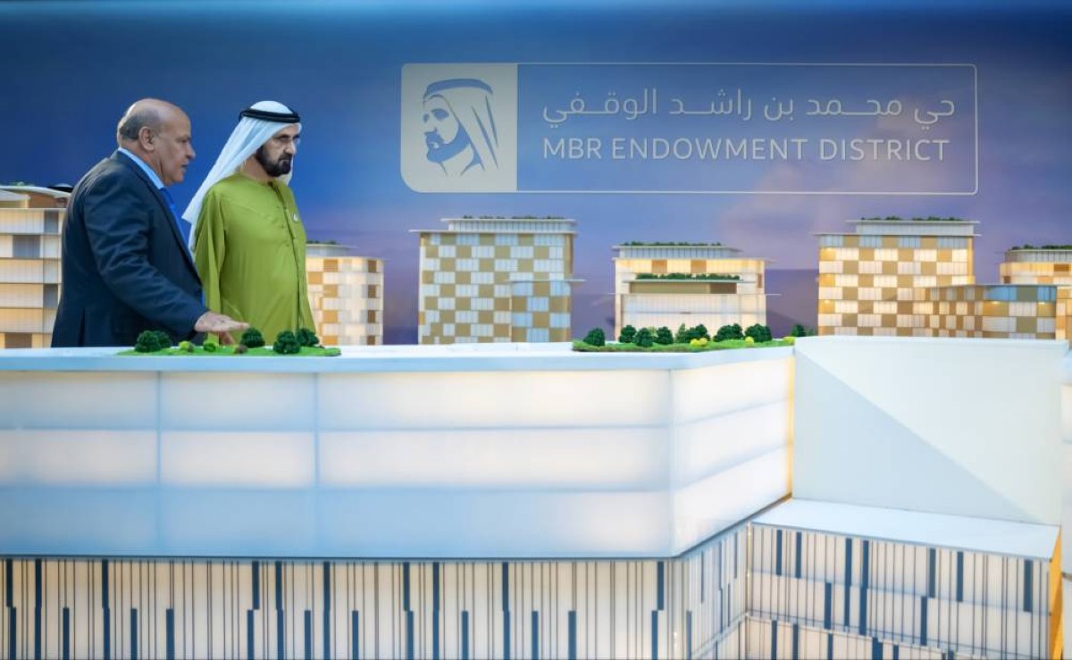 وأضاف صاحب السمو الشيخ محمد بن راشد: "سيضم الحي الوقفي مستشفى يستوعب 90 ألف مراجع سنوياً .. وجامعة طبية ومدارس تضم أكثر من 5000 طالب .. ومباني سكنية تضم 2000 وحدة سكنية .. وبوليفارد ومحال تجارية وقفية وغيرها".