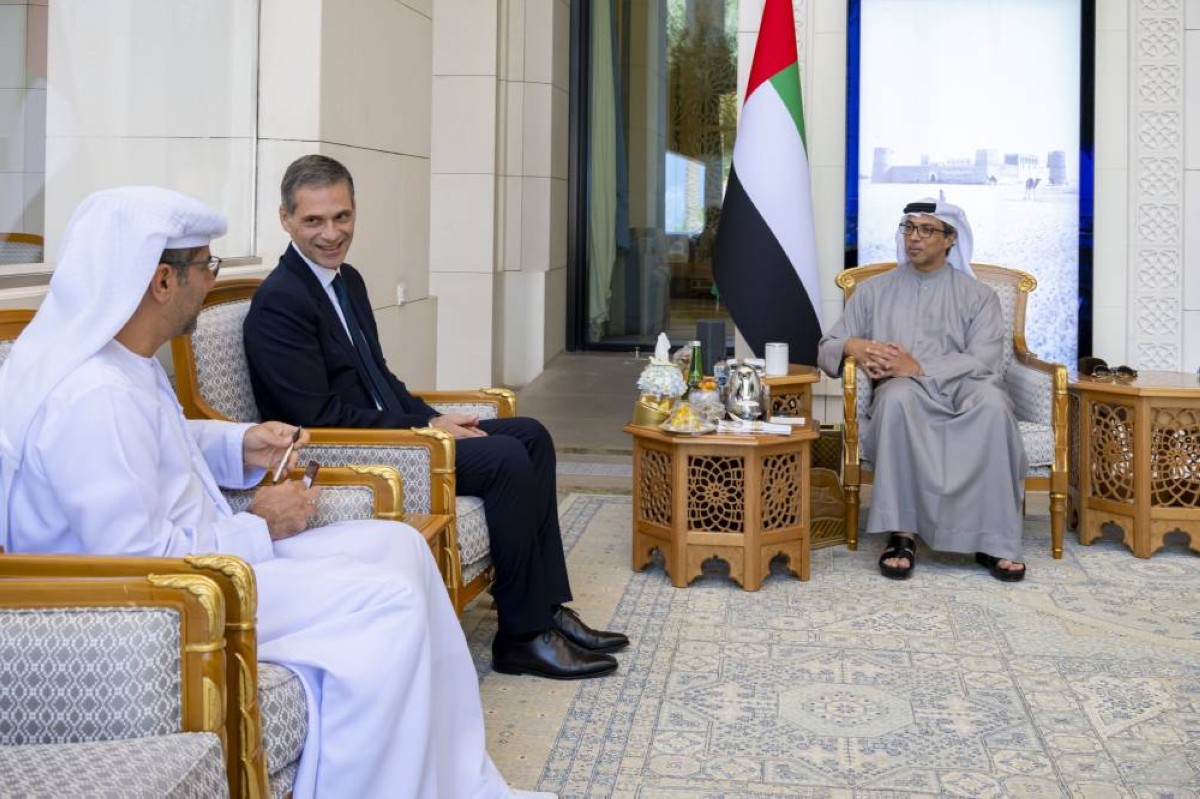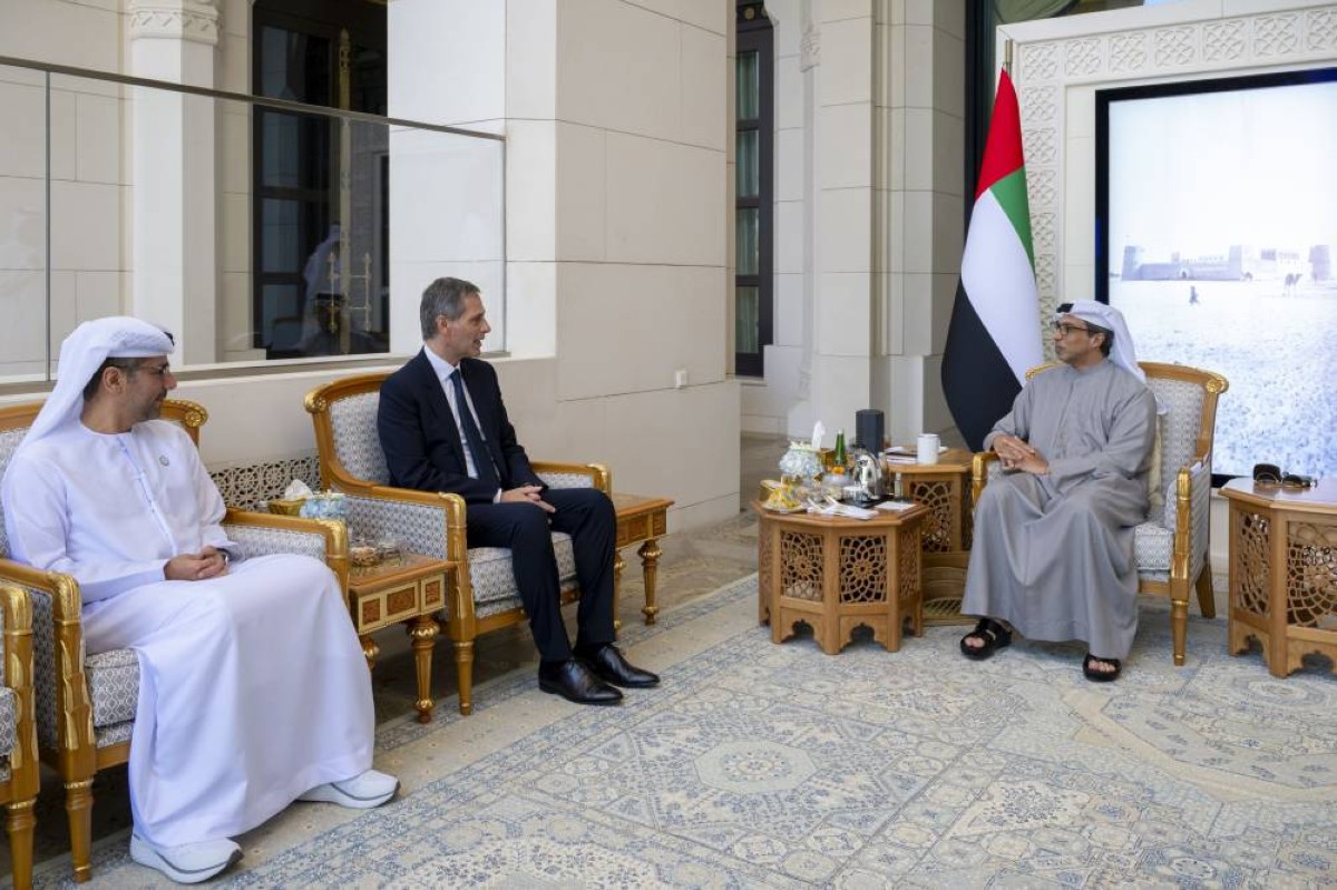 استقبل سمو الشيخ منصور بن زايد آل نهيان، نائب رئيس الدولة، نائب رئيس مجلس الوزراء، رئيس ديوان الرئاسة، في قصر الوطن بأبوظبي، السيد رودولف سعادة، رئيس مجلس الإدارة والرئيس التنفيذي لمجموعة "سي إم إيه سي جي إم" الفرنسية، المتخصصة في خدمات الشحن والخدمات اللوجستية.