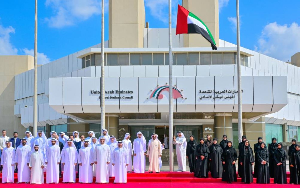 وذلك بحضور أعضاء المجلس الوطني الاتحادي، والدكتور عمر النعيمي الأمين العام للمجلس، والأمناء العامين المساعدين ومديري الإدارات وموظفي الأمانة العامة كما تم رفع علم الدولة أمام مبنى الأمانة العامة للمجلس في دبي.