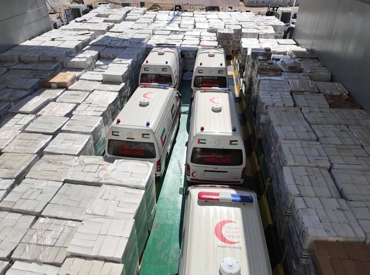 وكانت السفينة انطلقت من ميناء الحمرية بإمارة دبي، في 30 أكتوبر الماضي، وهي تحمل مواد غذائية وإيوائية ومستلزمات طبية، بالإضافة إلى 5 سيارات إسعاف، أسهم في تأمينها كل من هيئة الهلال الأحمر الإماراتي، ومؤسسة زايد بن سلطان آل نهيان للأعمال الخيرية والإنسانية، ومؤسسة خليفة بن زايد آل نهيان للأعمال الإنسانية، وشركة الفوعة للتمور، حيث بلغ إجمالي المساعدات المقدمة إلى غزة، حتى الآن، أكثر من 34 ألف طن.
