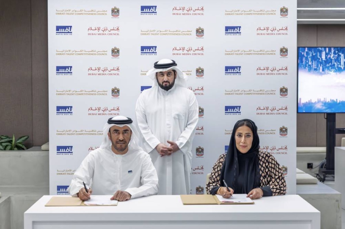 وعملاً بتوجيهات سموّ النائب الثاني لحاكم دبي رئيس مجلس دبي للإعلام، وبحضور سموّه، وقّع "مجلس دبي للإعلام" مذكرة تفاهم مع "مجلس تنافسية الكوادر الإماراتية"، للتعاون في تأكيد فرص العمل للمواهب الإعلامية الإماراتية في القطاع الخاص.