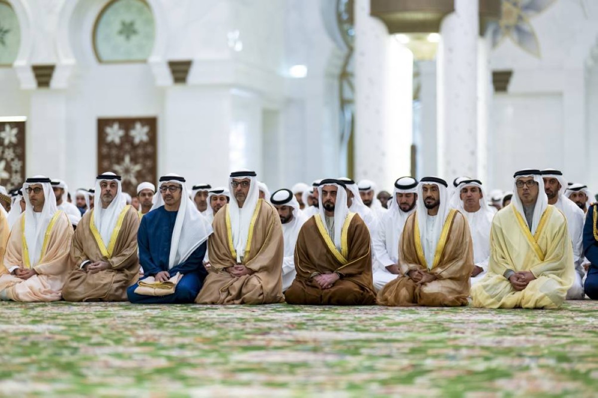 كما أدى الصلاة إلى جانب سموه كل من .. سمو الشيخ منصور بن زايد آل نهيان نائب رئيس الدولة نائب رئيس مجلس الوزراء رئيس ديوان الرئاسة، وسمو الشيخ خالد بن محمد بن زايد آل نهيان ولي عهد أبوظبي، وسمو الشيخ سرور بن محمد آل نهيان، وسمو الشيخ نهيان بن زايد آل نهيان رئيس مجلس أمناء مؤسسة زايد بن سلطان آل نهيان للأعمال الخيرية والإنسانية، والفريق سمو الشيخ سيف بن زايد آل نهيان نائب رئيس مجلس الوزراء وزير الداخلية، وسمو الشيخ حامد بن زايد آل نهيان، وسمو الشيخ عبد الله بن زايد آل نهيان نائب رئيس مجلس الوزراء، وزير الخارجية، وسمو الشيخ عمر بن زايد آل نهيان، نائب رئيس مجلس أمناء مؤسسة زايد بن سلطان آل نهيان للأعمال الخيرية والإنسانية، وسمو الشيخ خالد بن زايد آل نهيان رئيس مجلس إدارة مؤسسة زايد العليا لأصحاب الهمم، وسمو الشيخ الدكتور سلطان بن خليفة آل نهيان مستشار صاحب السمو رئيس الدولة، وسمو الشيخ ذياب بن محمد بن زايد آل نهيان نائب رئيس ديوان الرئاسة للشؤون التنموية وأسر الشهداء، وسمو الشيخ حمدان بن محمد بن زايد آل نهيان نائب رئيس ديوان الرئاسة للشؤون الخاصة، وسمو الشيخ زايد بن محمد بن زايد آل نهيان، وسمو الشيخ زايد بن حمدان بن زايد آل نهيان، ومعالي الشيخ نهيان بن مبارك آل نهيان، وزير التسامح والتعايش، ومعالي الشيخ محمد بن حمد بن طحنون آل نهيان مستشار رئيس الدولة، وعدد من الشيوخ والمسؤولين وجموع المصلين