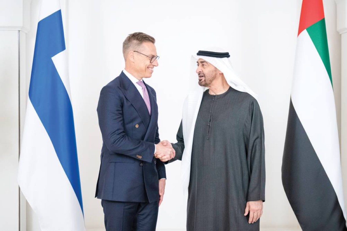 بحث صاحب السمو الشيخ محمد بن زايد آل نهيان، رئيس الدولة، حفظه الله، وألكسندر ستوب، رئيس جمهورية فنلندا، علاقات التعاون بين البلدين وسبل تعزيز مساراتها في مختلف المجالات، خاصة الاقتصادية والتنموية بما يخدم مصالحهما المشتركة، ويعود بالخير على شعبيهما.