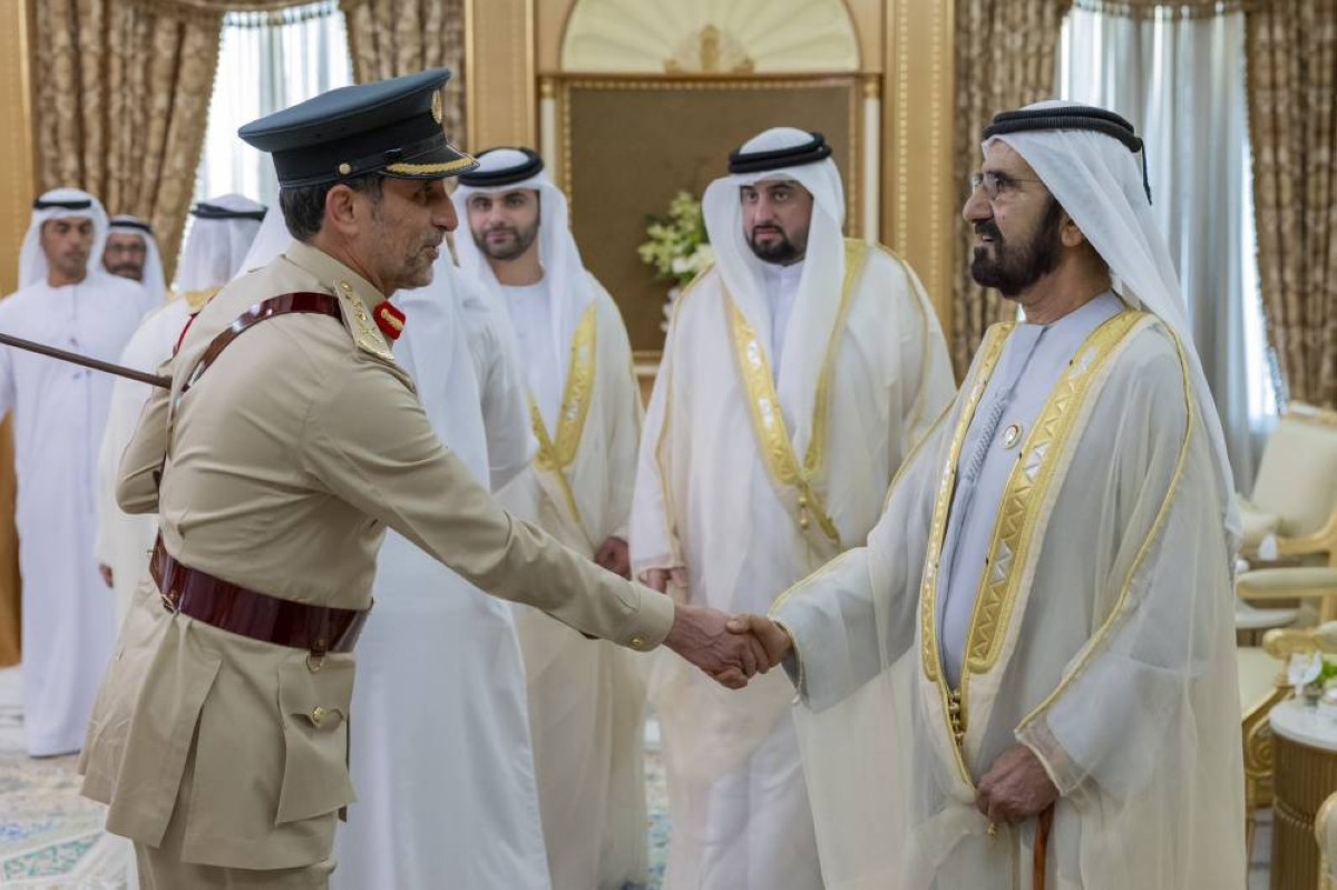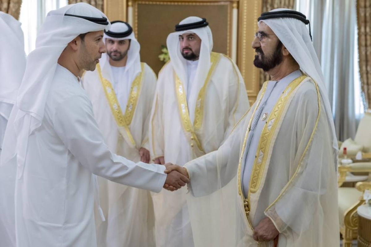 وتقبل سموّه التهاني والتبريكات بهذه المناسبة المباركة من جمع من الشيوخ وأعيان البلاد ومعالي الوزراء وكبار المسؤولين في الدولة من مدنيين وعسكريين، الذين هنأوا سموّه، سائلين المولى عزّ وجلّ أن يديم على سموّه موفور الصحة والعافية وعلى دولة الإمارات وشعبها الكريم نِعَمة الأمن والأمان والرفعة والرقي.